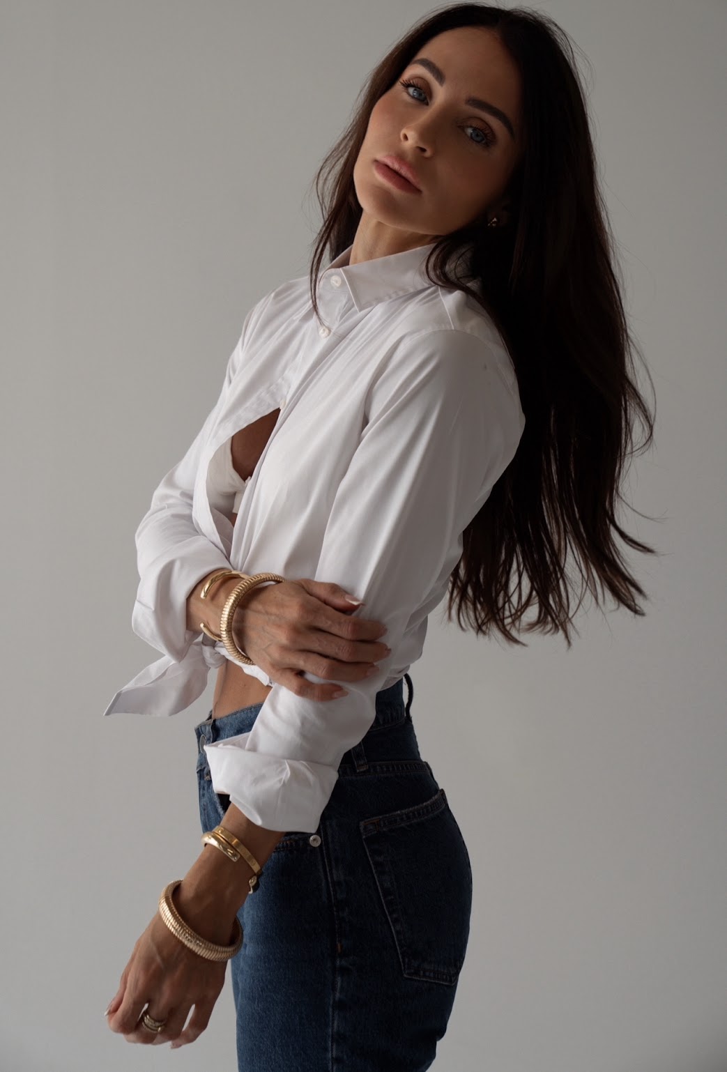 NP: My favorite leather coat from Nour Hammour, the blackest pair of denim I own, my favorite Arakii dress that I’m obsessed with, Julietta jewelry, and my Le Sundial belt; it pulls everything together.