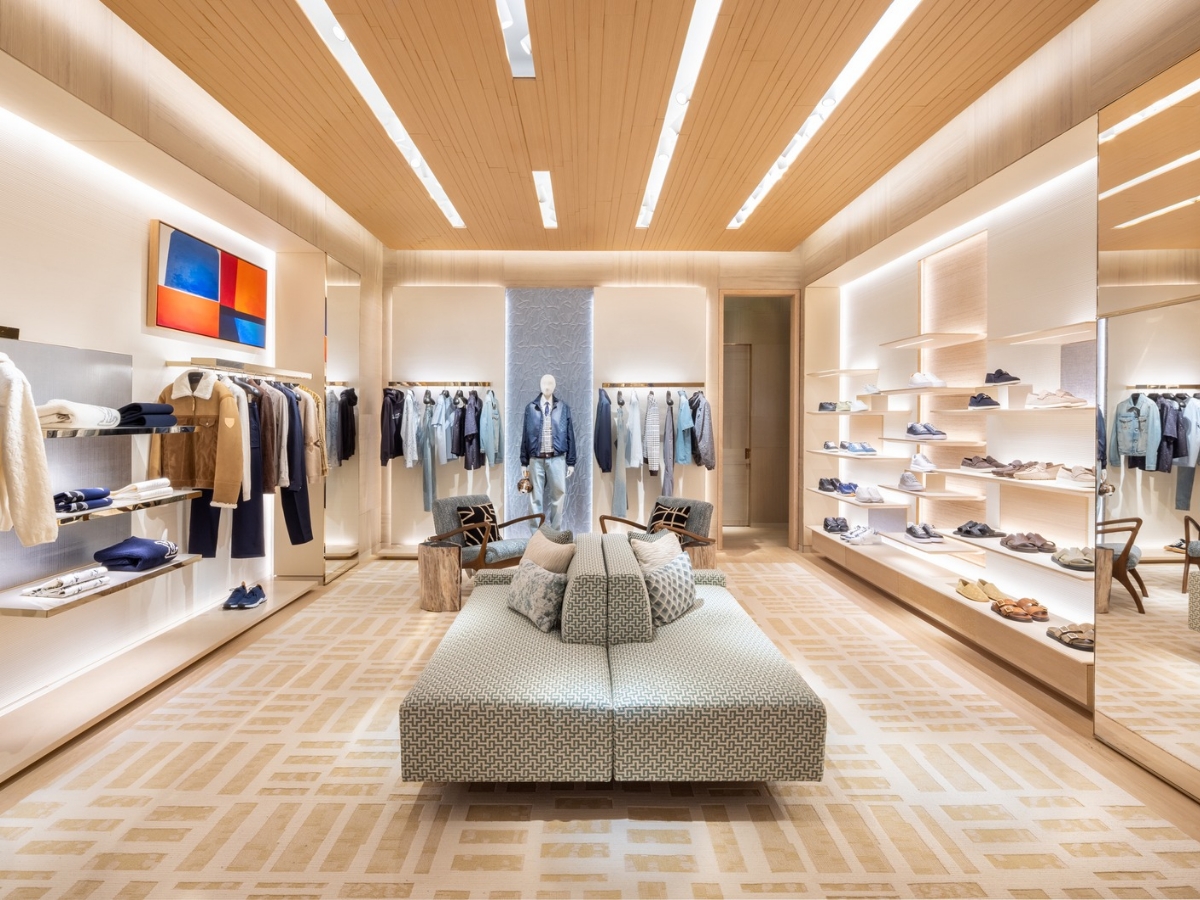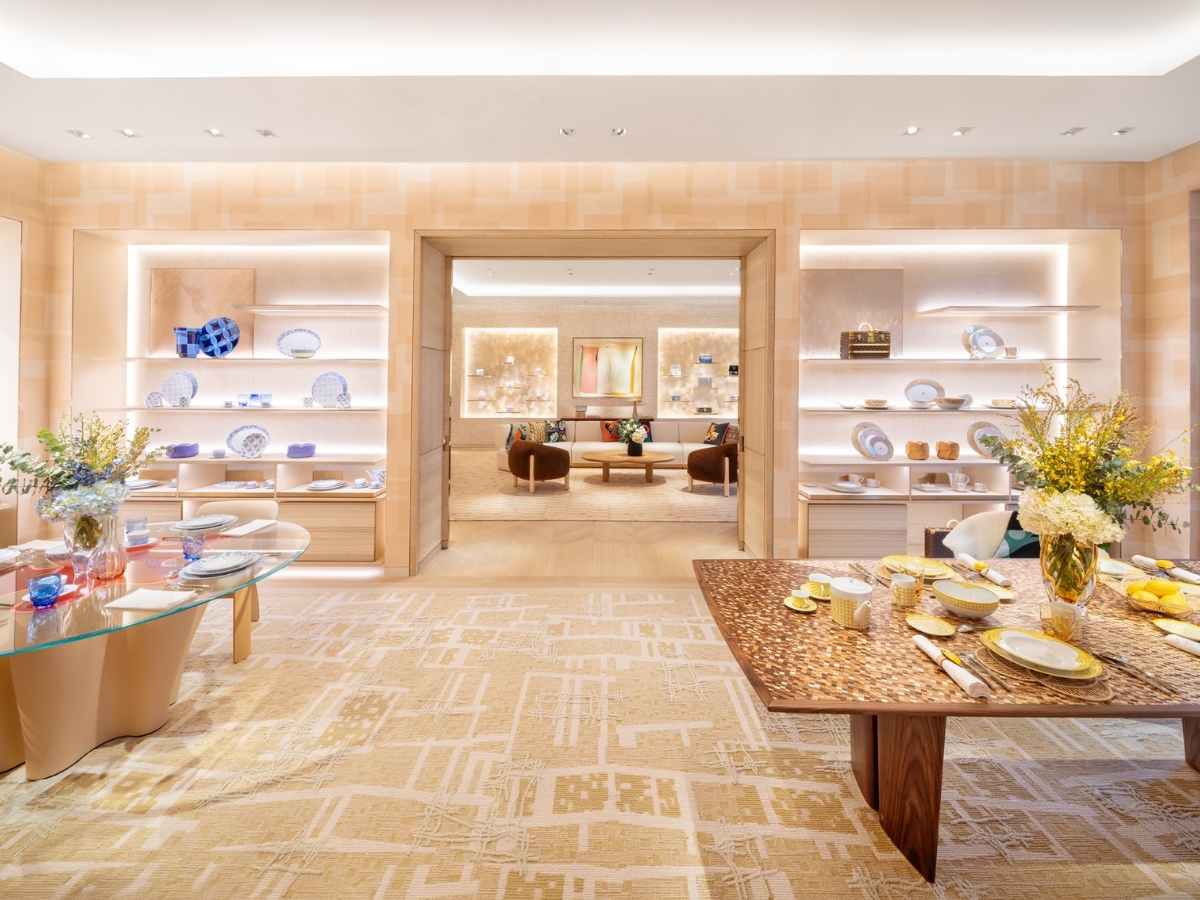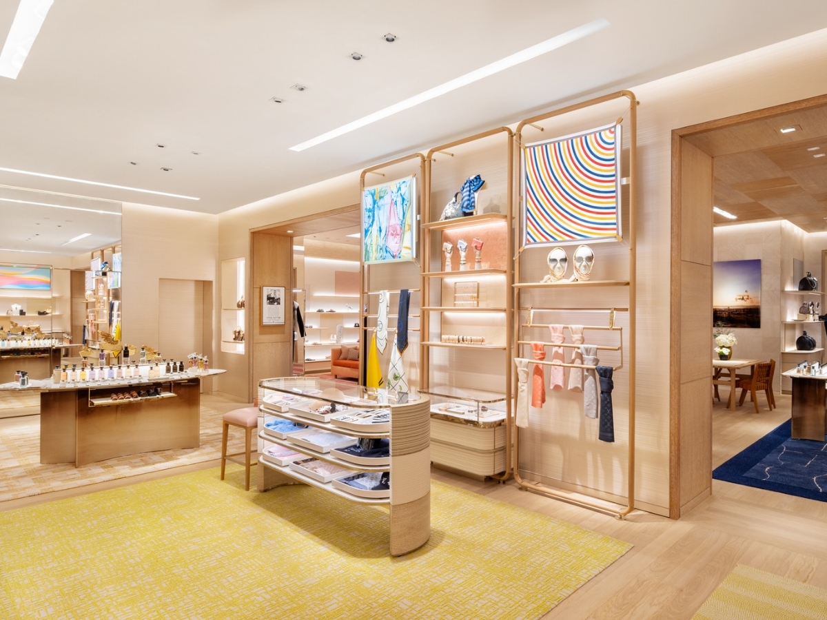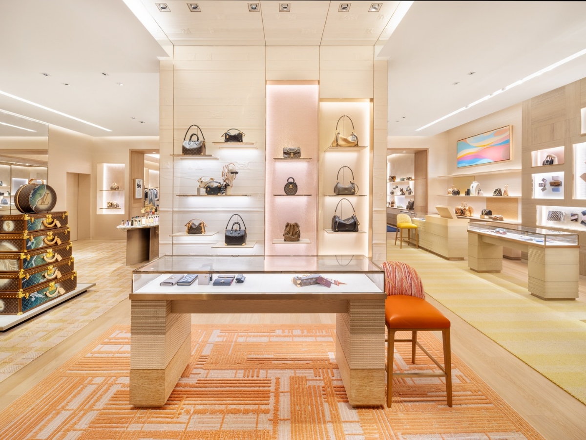 The store offers a complete universe of Louis Vuitton creations, from women’s and men’s ready-to-wear to leather goods, shoes, accessories, watches, jewelry, and fragrances. On the second level, an intimate private salon provides a setting for personalized appointments and bespoke services, reinforcing the Maison’s dedication to craftsmanship and experience.
