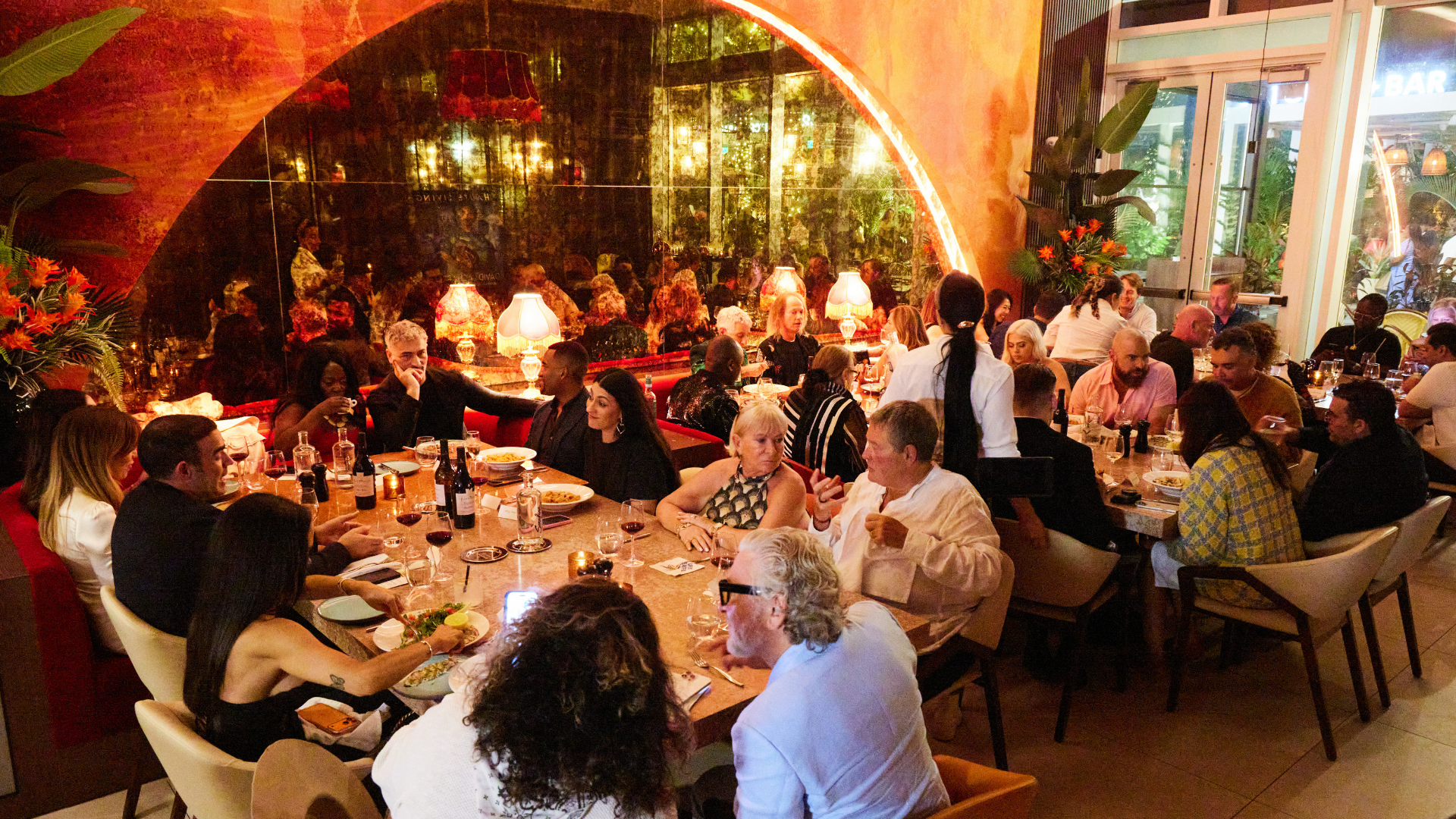 Serafina, at Miami Worldcenter, was the perfect setting. Warm light, full glasses, Italian spirit. Guests arrived to cocktails and wine, conversation rising softly, the evening unfolding with ease. Dinner began family-style, with bruschetta, crispy calamari, homemade meatballs, capers, and the crisp Di Sofia Caesar shared around the table.