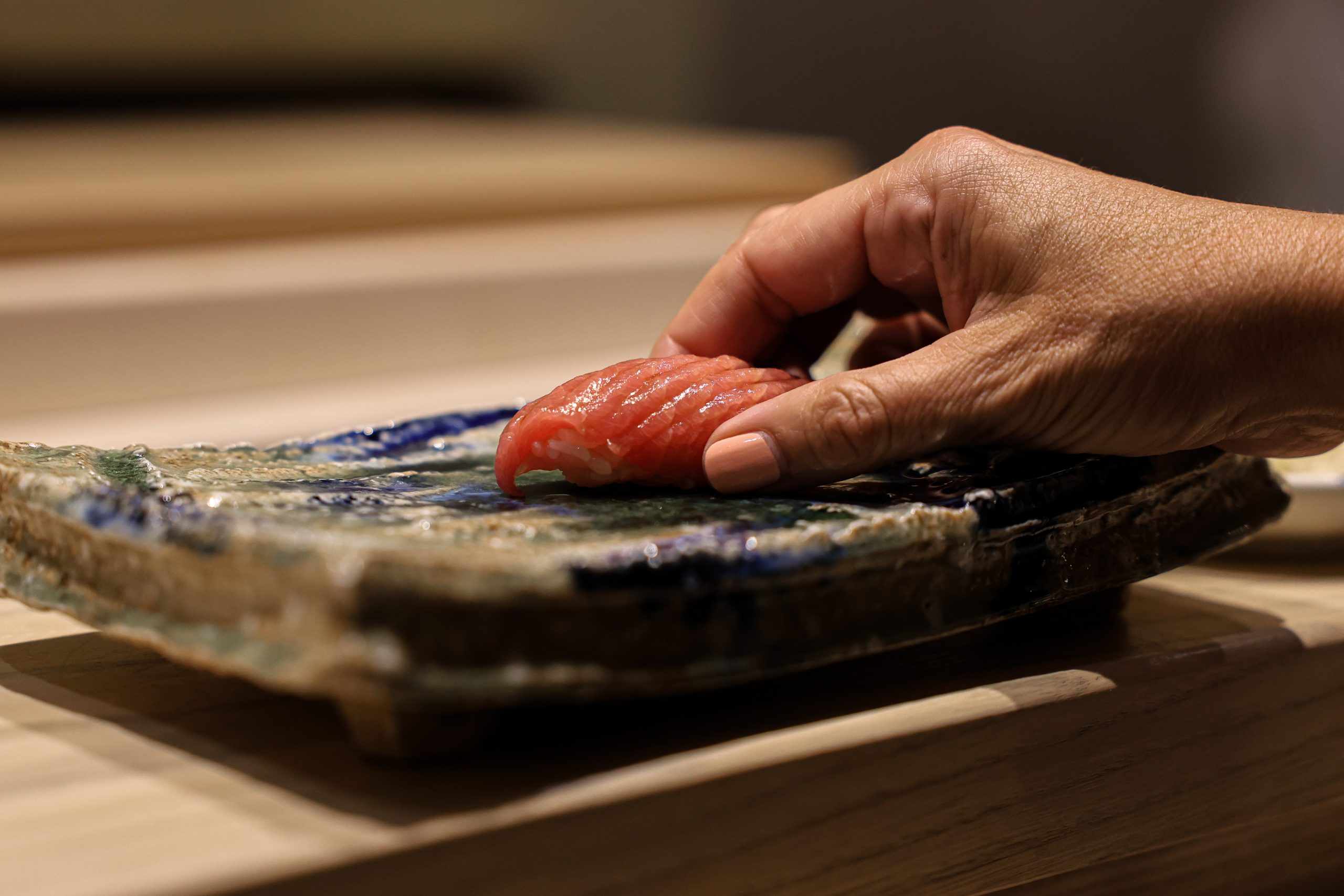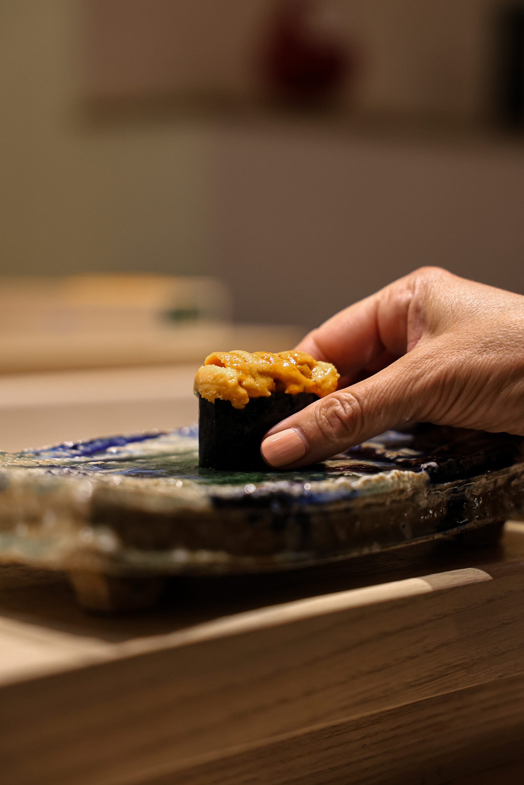 CW: To me, design and food are inseparable. The light wood interiors, the tatami coasters, the ceramics and antiques from Kyoto and Asheville, they all serve one purpose: to create a calm and honest setting where the ingredients can speak. When you’re serving something as delicate as a single piece of nigiri, every detail around it matters. The environment should feel like a deep breath. Minimal but thoughtful. Refined but warm. The interior design and ceramic choices should reflect my personality and our seasonal ingredients, and also create a rhythm that matches how we prepare and serve each course.