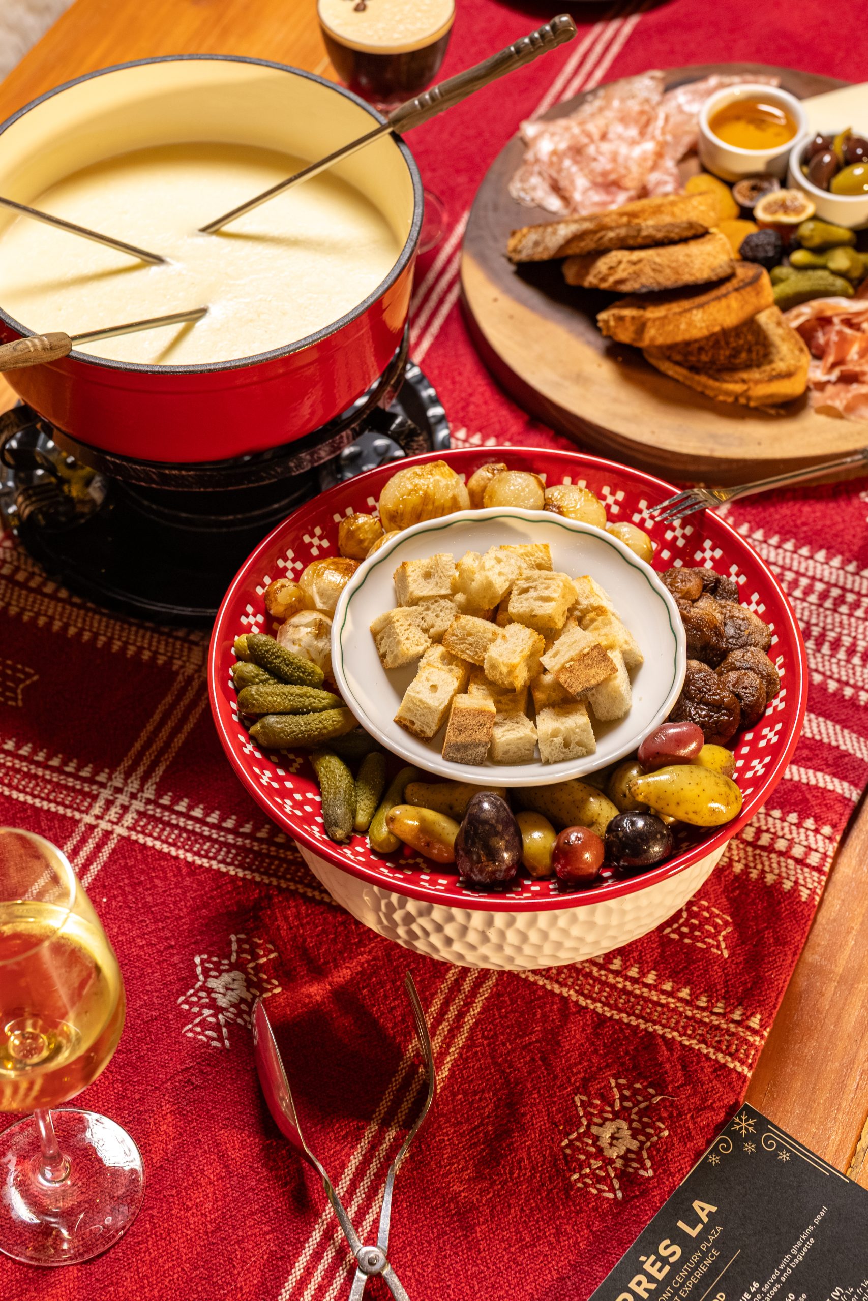 The menu is unapologetically comforting and perfectly calibrated for cold-weather indulgence. Guests can gather around signature cheese fondue, share a curated charcuterie board from Lumière, and explore a festive cocktail lineup created in partnership with The Macallan, the chalet’s distinguished beverage collaborator. New this season, Macallan tasting flights take center stage, inviting guests to explore rare and premium expressions alongside chalet classics like The Red Thread (built on Macallan 12 Double Cask), the Spiced Pear Hot Toddy, and the fan-favorite Espress-ski Martini — the kind of drink that feels especially right when wrapped in a blanket under the stars.