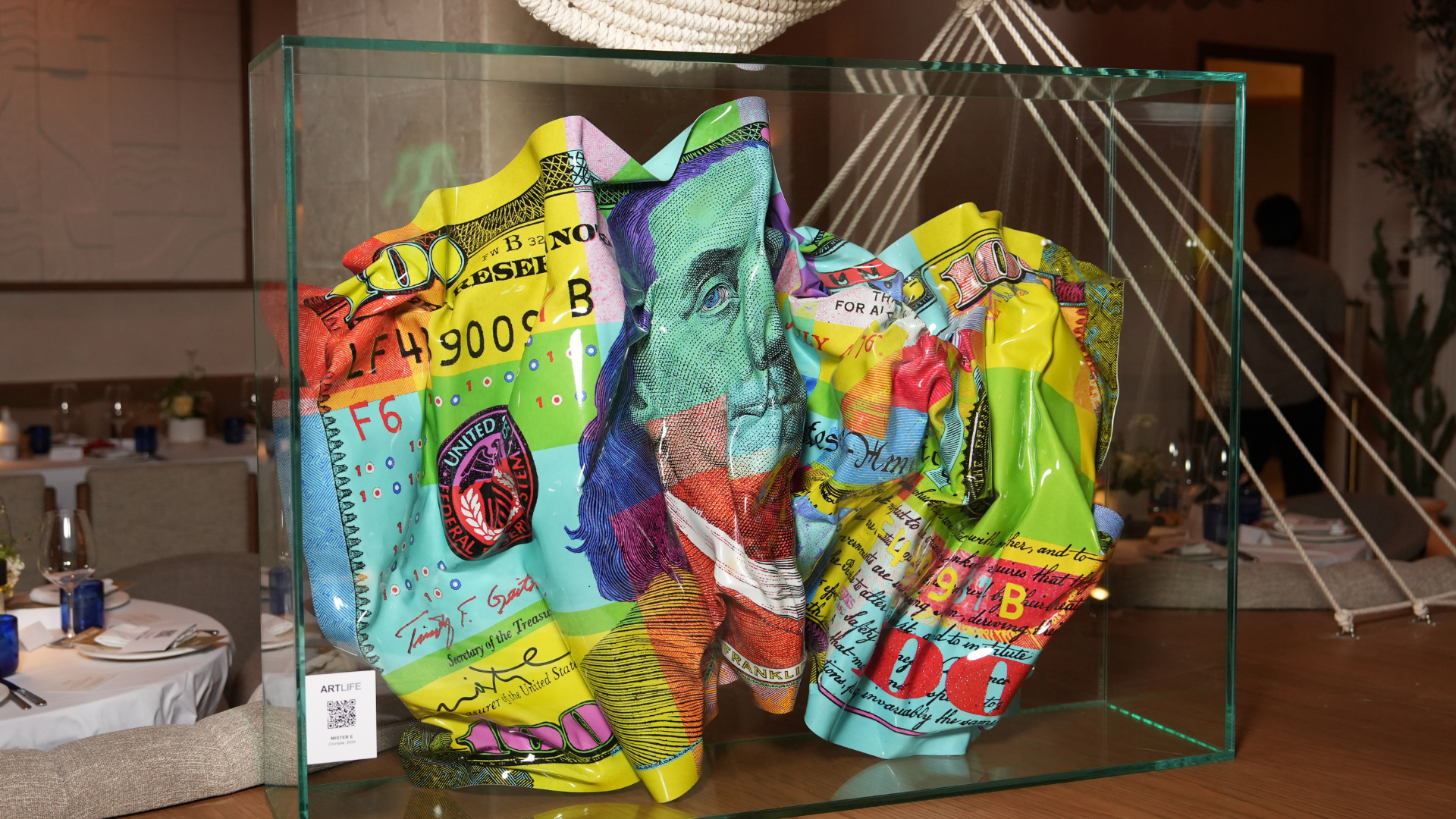Custom artwork by Mister E appeared throughout the venue, in paintings and sculptural elements, thoughtfully designed to complement the evening’s aesthetic.