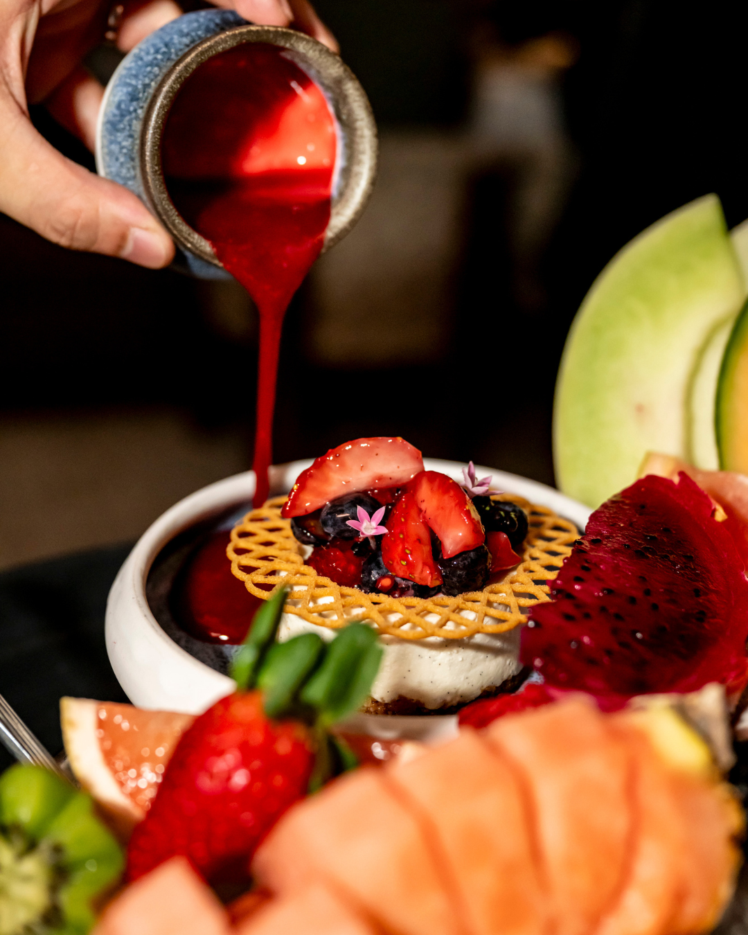 The night then unfolded into a four-course dining experience, moving from Mediterranean-inspired starters and fresh seafood to a refined main course highlighted by USDA Prime Angus hanger steak, with OVID Napa Valley pours throughout, before ending on a decadent high with AVA’s unforgettable signature desserts.