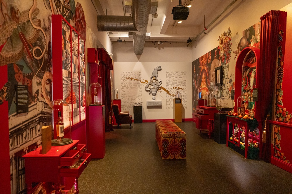 Designed as a modern cabinet of curiosities, Imaginarium is lush, intricate, and intentionally enigmatic. Rather than a traditional gallery layout, the exhibition unfolds as an exploratory journey, encouraging guests to engage with the senses and reflect on the creative decisions behind every label and blend. Thought-provoking elements invite conversation, while interactive moments surprise and delight, making the experience equally compelling for art lovers, design enthusiasts, and whisky aficionados alike.