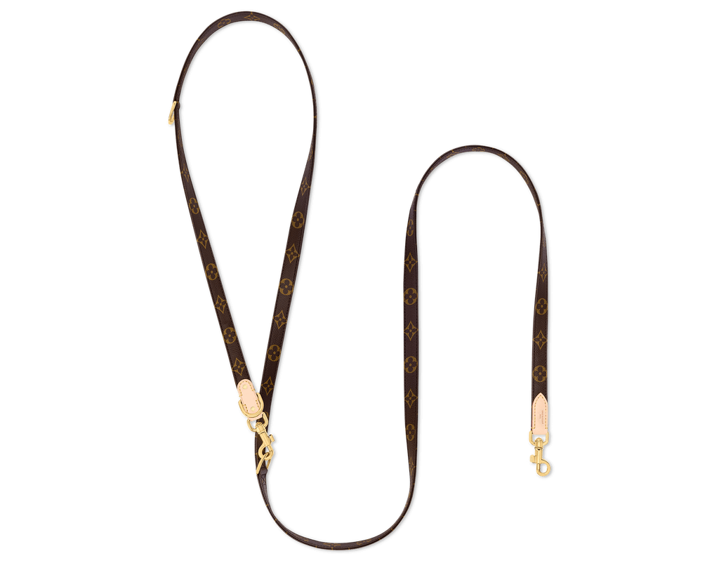 Personalization is central to the experience. Through Louis Vuitton’s hot stamping service, dog names of up to ten characters can be added to the looped leather leash handle or inside a Monogram collar. Even cleanup bag dispensers receive the full treatment and come in Monogram canvas with Shiba Inu, Beagle, or Bulldog clip ons.