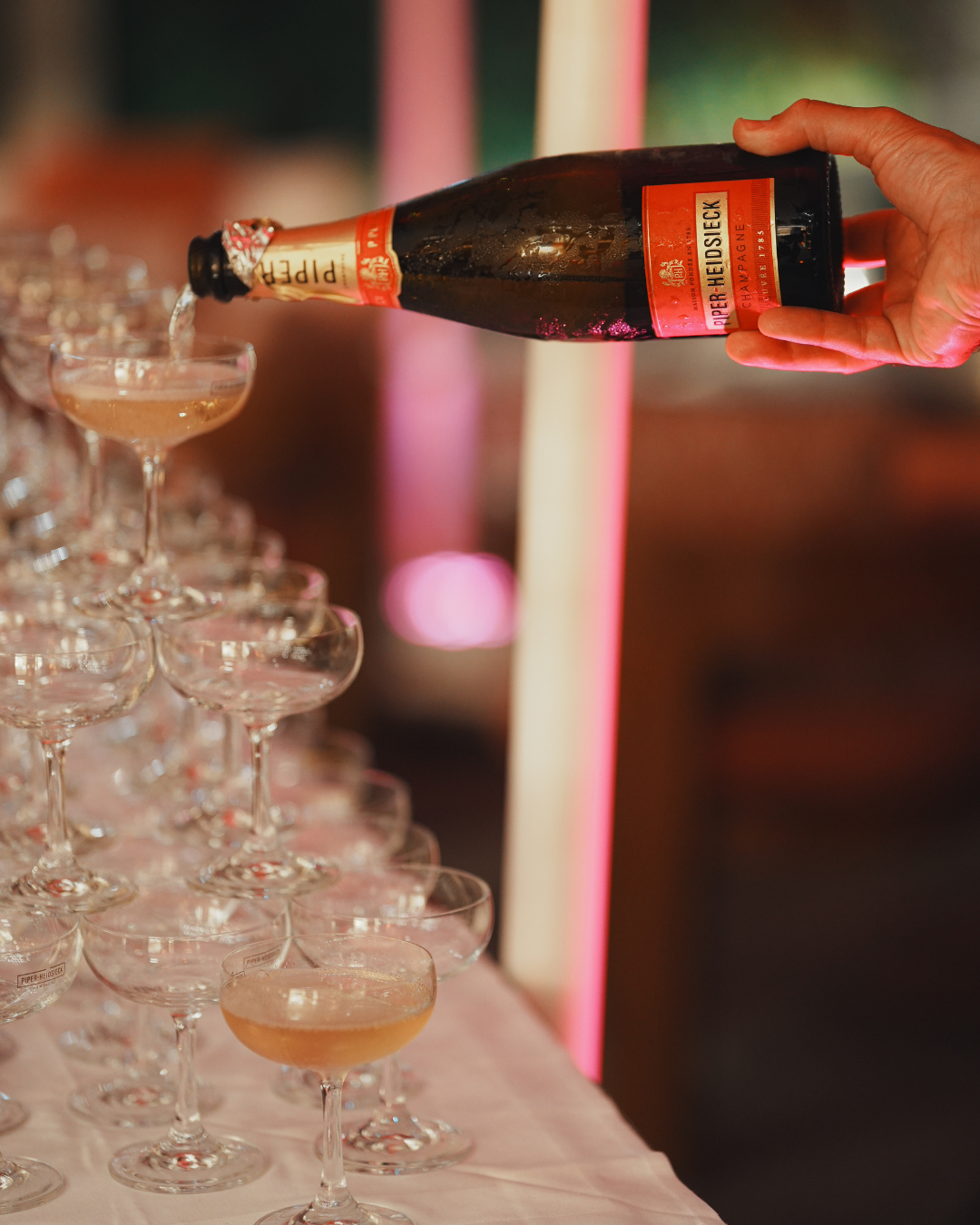 The cocktail program paid tribute to Monroe with three signature creations: The Velvet Monroe, The Red Lip Classic, and Marilyn’s Fashion. A sculptural Piper ice installation anchored the bar, serving as both a visual centerpiece and a celebratory statement.
