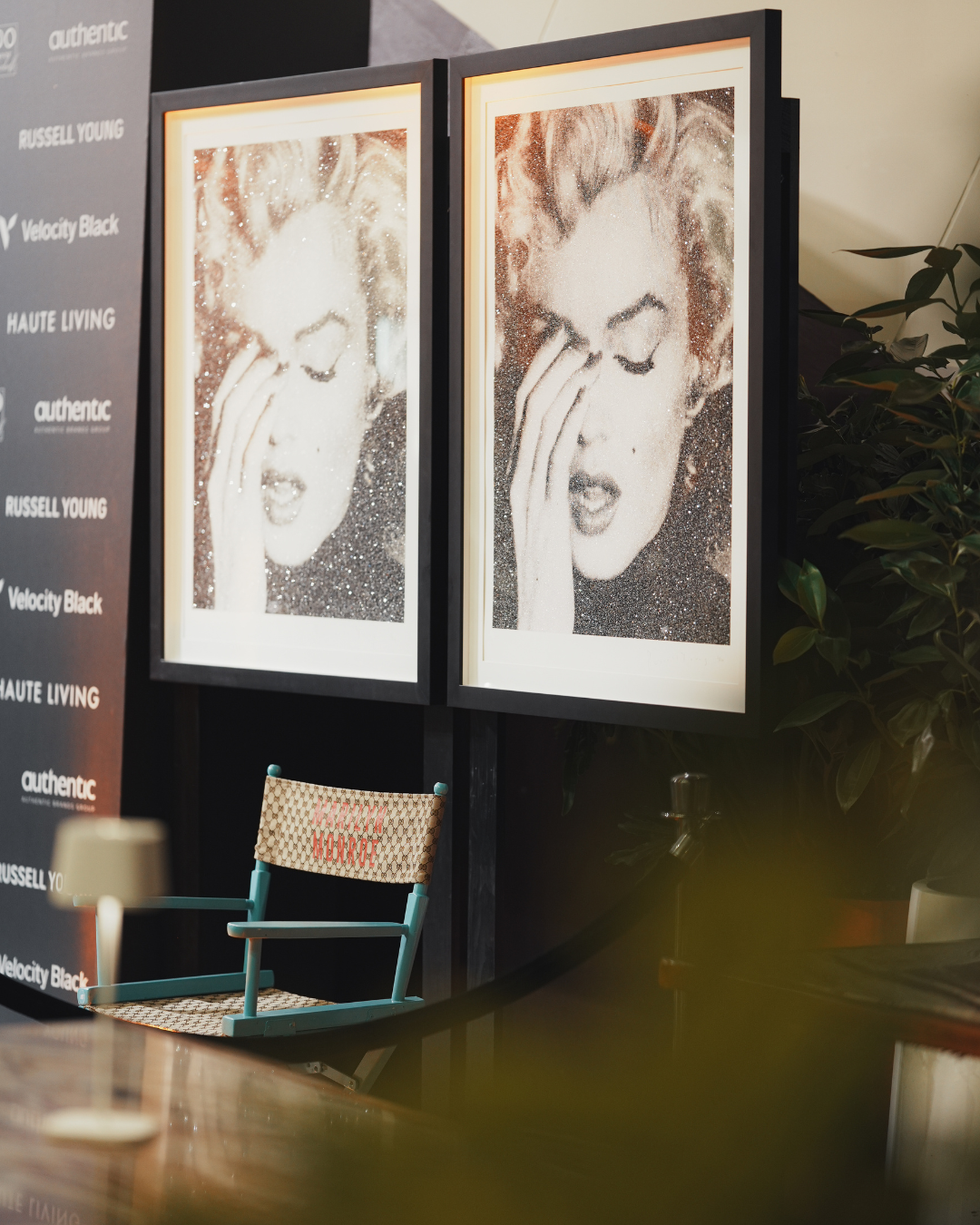 The evening began with a private, invitation only dinner presented by Velocity Black, offering select guests an exclusive first look at Russell Young’s Marilyn Monroe collection. The intimate setting created space for thoughtful conversation around Monroe’s legacy and Young’s bold, modern interpretation of her image.