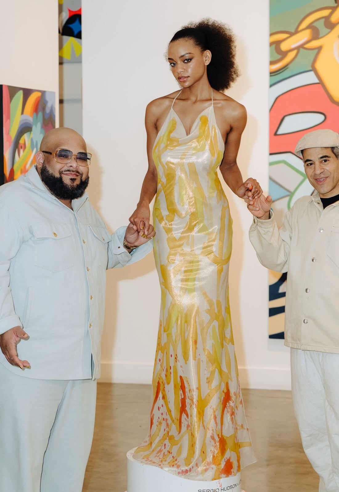 For one night only, guests were surrounded by JonOne’s latest body of work while witnessing the collaboration unfold in real time. In a powerful moment that captured the spirit of Art Basel week, JonOne painted directly onto a custom Sergio Hudson garment, transforming fashion into a living canvas before an audience of collectors. The live creation underscored the shared values between the two artists—bold self-expression, cultural storytelling, and the belief that art should move freely across disciplines without boundaries.