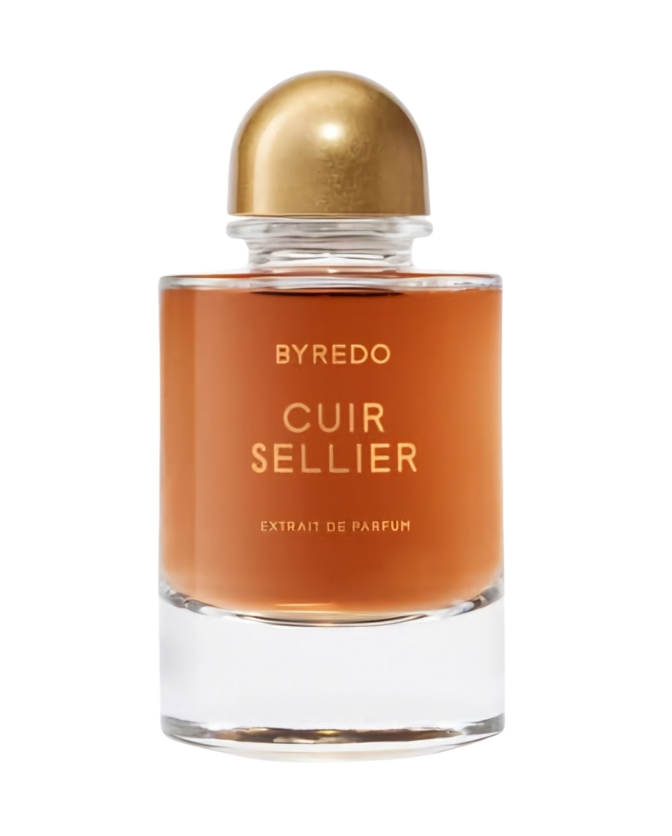 Byredo Cuir Sellier Extrait de Parfum plays leather against black tea and tobacco with birch and oakmoss in the background, resulting in a sleek, dark scent that feels sharp and modern.