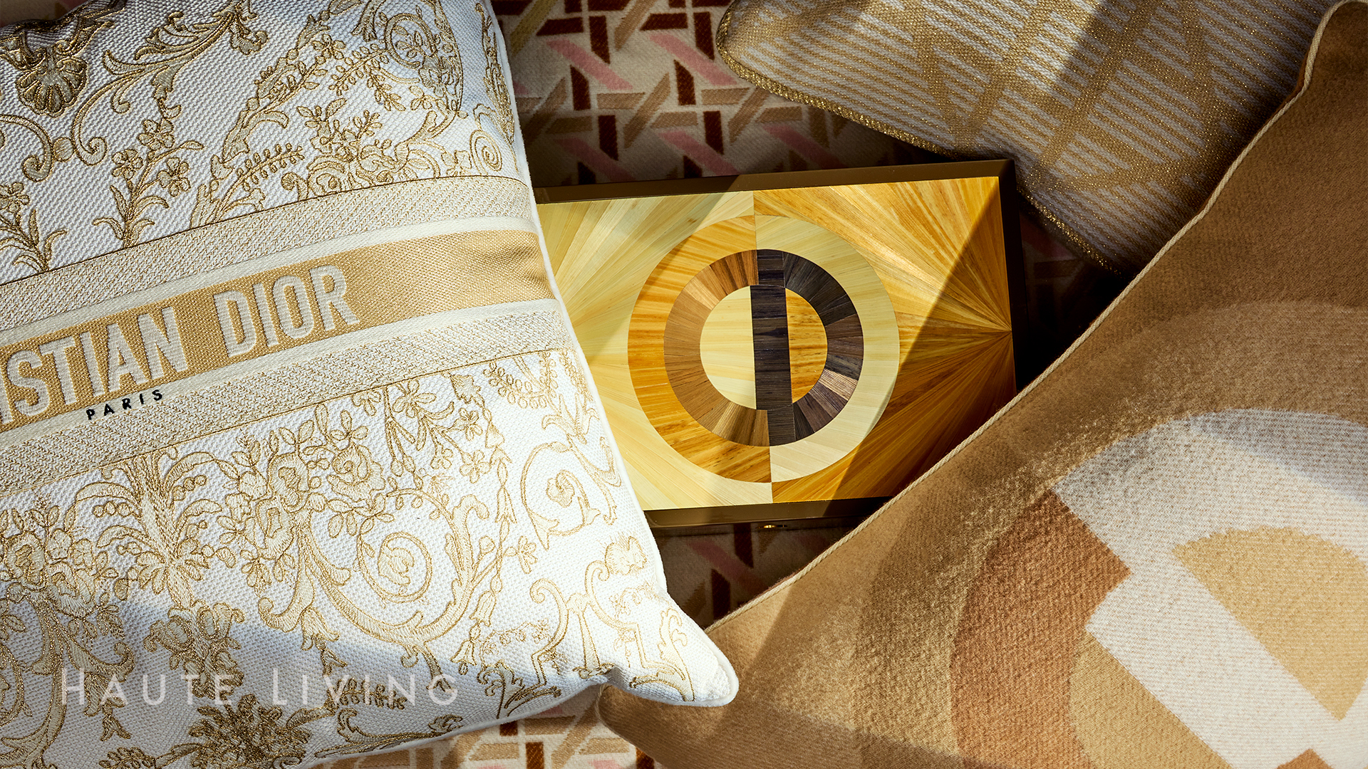 Dior Maison Cruise 2026 square pillow, $1,500; CD Entrelacé watch box, $8,400; Cross Cannage blanket, $1,900; Cross Cannage square pillow, $750; and CD Entrelacé rectangular pillow,$800; available at Dior boutiques nationwide and 1-800-929 Dior