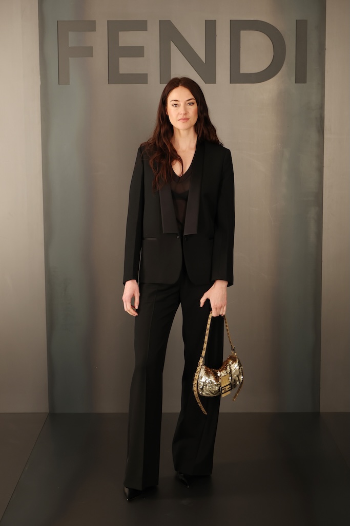 The bags felt like a wink to her early Fendi days. Baguettes in sequins, zebra, leopard, dense embroidery, even shaggy multicolor fur, all built on that familiar silhouette and finished with the signature hardware. Some were slick and black, others unapologetically textured, but they carried that irreverent energy that defined late 90s early 2000s Fendi. It felt less like nostalgia and more like reclamation. The proportions stayed close to the body, straps tucked under the arm, intimate and effortless. A confident reminder of why the Baguette remains one of the most iconic, and endlessly collectible, accessories in fashion.