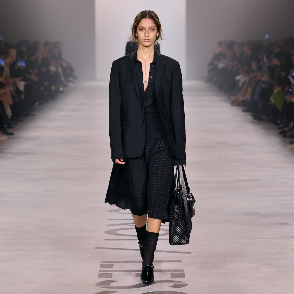 As the show notes put it, these clothes were meant to “bear witness to a life lived.” They were designed to accompany our lives, our emotions, our desires. That idea of wardrobing ran through everything. Not looks built for a single moment, but pieces that fold into daily reality. After the show, Chiuri spoke plainly about dissolving the line between men’s and womenswear. A great black blazer is a great black blazer, regardless of who wears it. That philosophy showed up in the construction. Jackets cut with precision but worn with ease. Trousers that moved. Coats that wrapped instead of dictated. The focus was not on transformation, but on continuity. Clothes meant to stay with you.