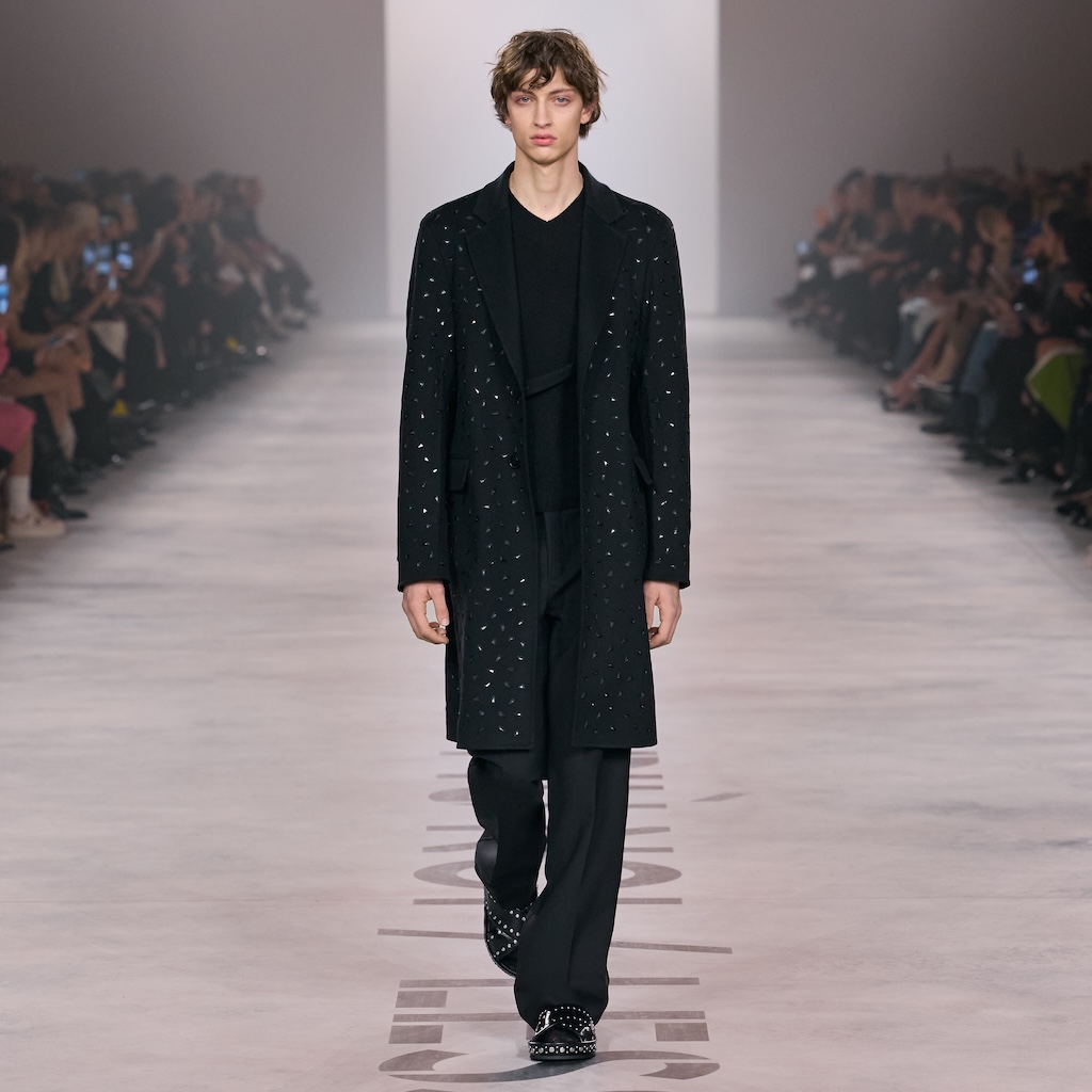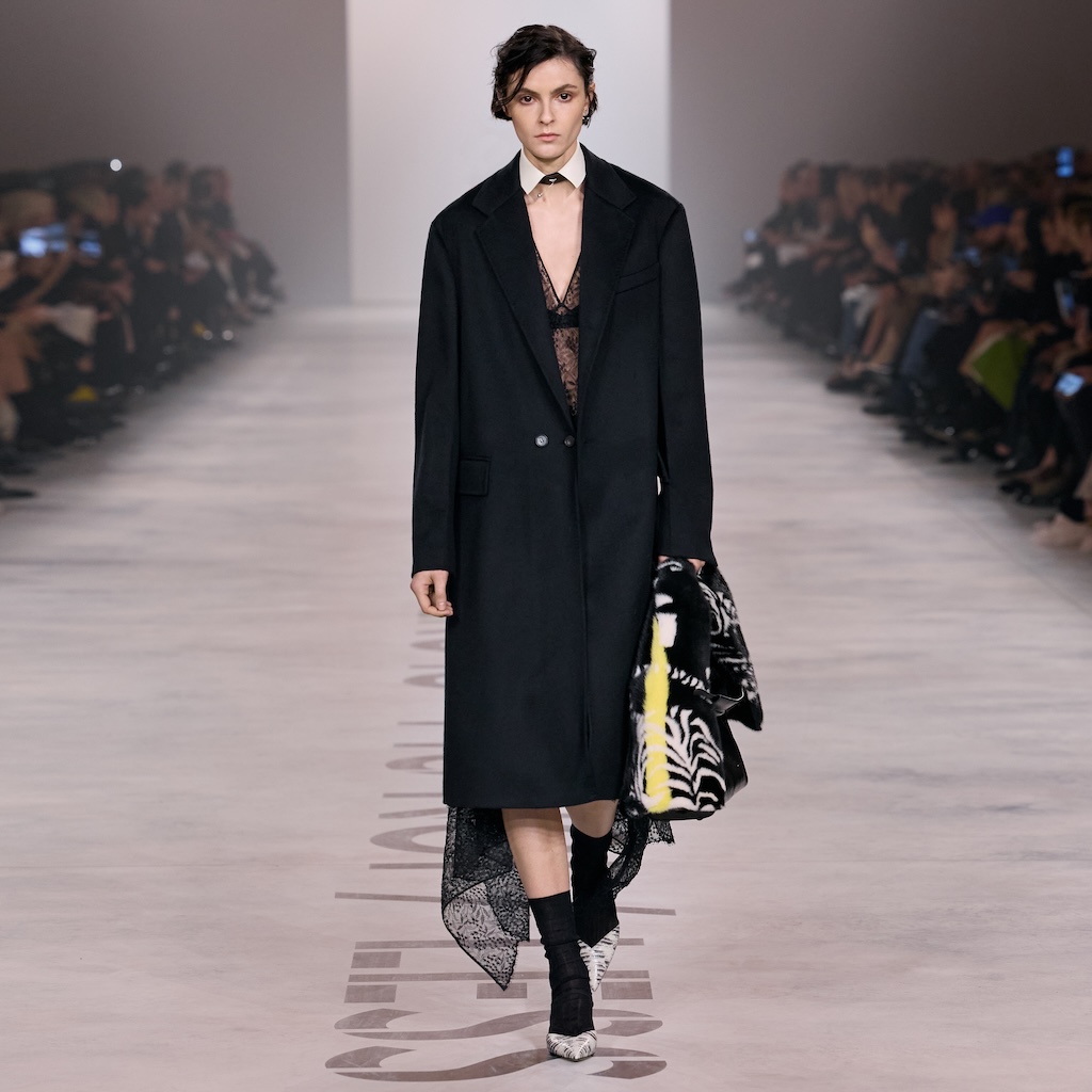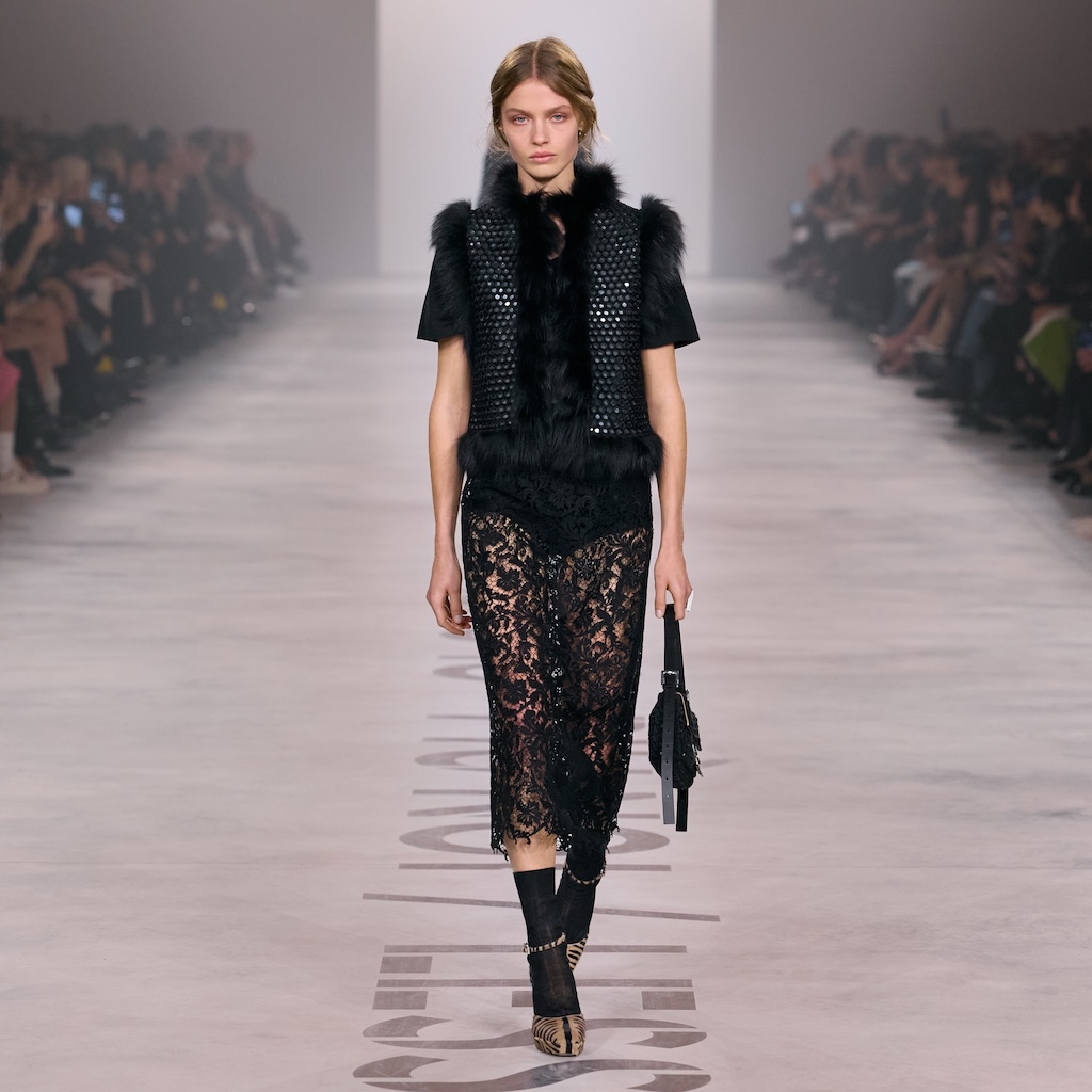 Grazia Chiuri’s first show back carried weight. Titled “Less I, More Us,” the collection felt like a recalibration. A nod to the five Fendi sisters and the collective spirit that built the house. On the runway, men and women walked together in clothes that blurred masculine and feminine into shared qualities expressed through tailoring, texture, and proportion. The silhouettes moved with the body instead of controlling it. There was a tangible return to tactility, to garments that feel lived in rather than engineered for effect.
