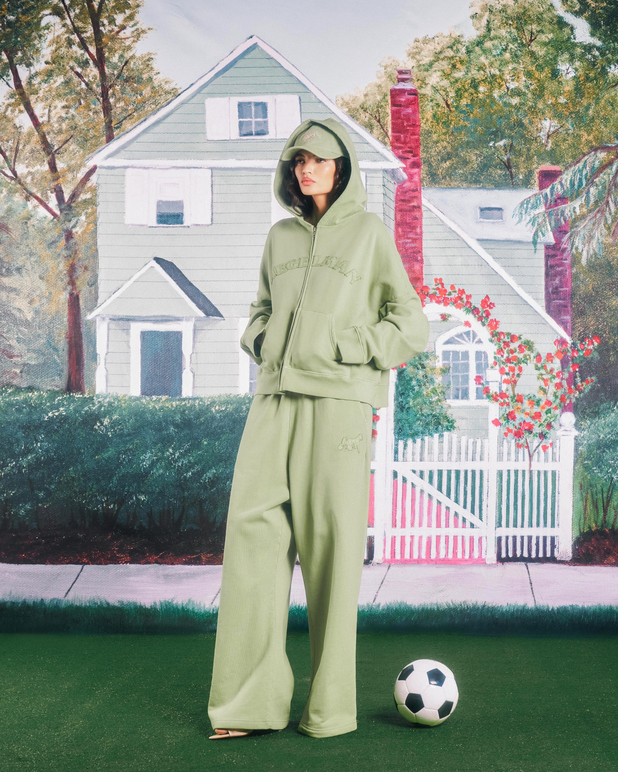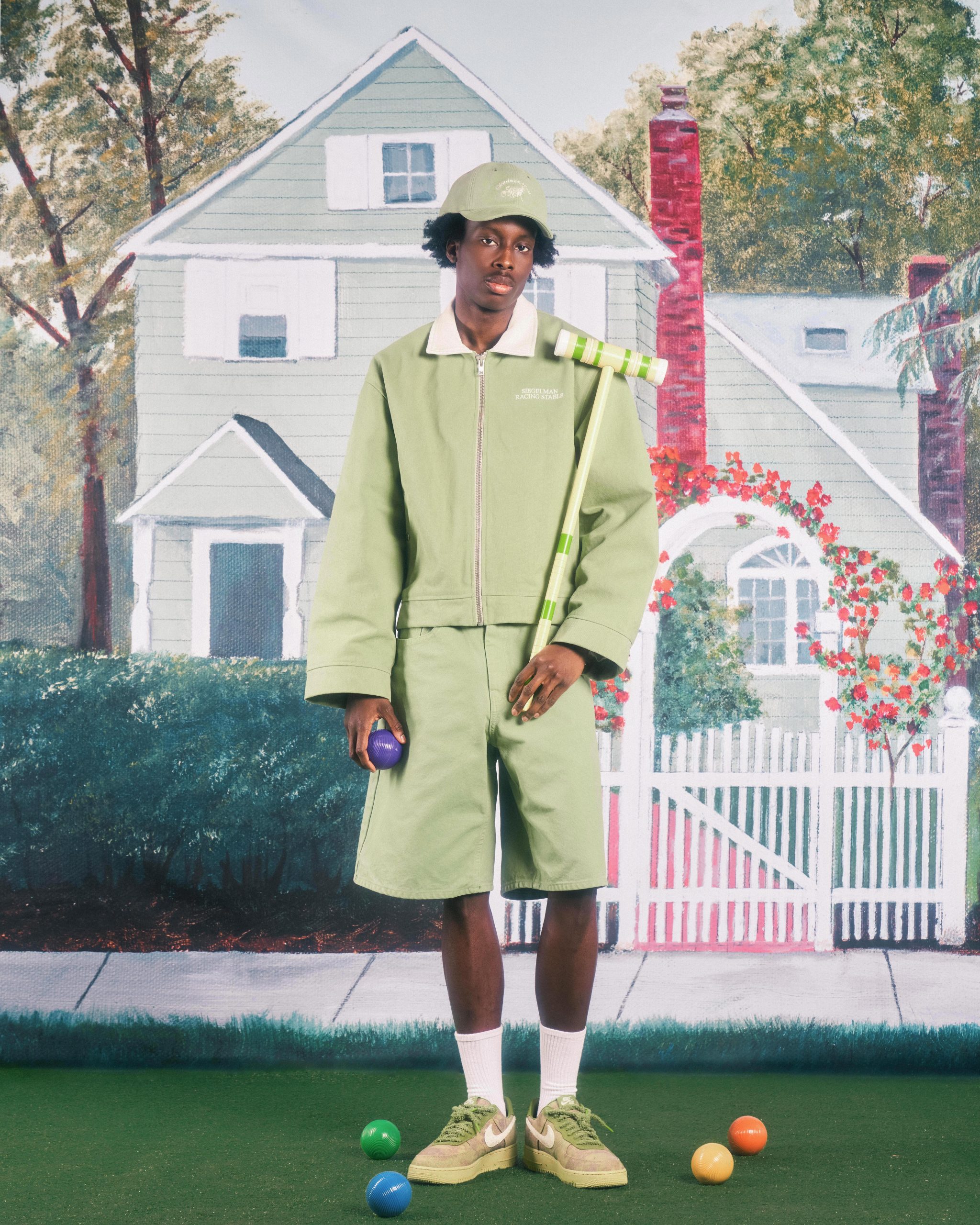 The brand’s Pre-Spring Collection goes back to the founder’s roots, this time with a trip to his childhood home. Looking at a 1998 painting of the house created by his grandmother, Siegelman imagined an entire collection of knits, fleece, canvas outerwear, and accessories around it. Everything is tied to his childhood home: the unique sea-foam green exterior of the house is the base for the collection with hints of the deep navy front woven throughout in the detailing; the home’s 23 address matches the number of pieces in the collection itself; an enlarged iteration of the painting even serves as a backdrop for the campaign shoot.