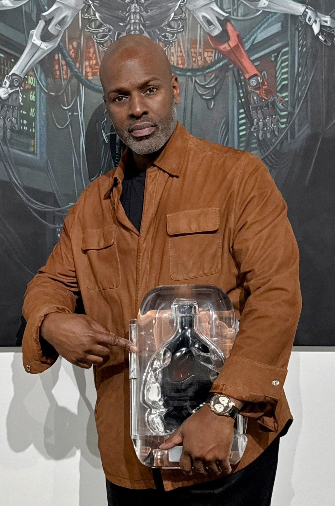 The vessels themselves represent one of the most striking elements of the project. Rather than traditional bottles, each piece is engineered as a functional sculpture created through collaborations with master artisans and precision engineers. Materials such as crystal, aluminum, and cast resin are shaped and refined to jewelry grade tolerances, producing objects that feel equally suited to a private residence, gallery, or museum.