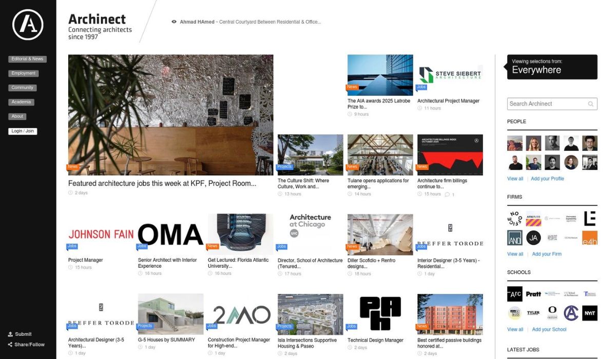 Key Insight for Luxury Firms: While individuals use Archinect for job seeking, firms can use it for talent acquisition and brand presence. By encouraging key team members to maintain polished profiles, a firm showcases its collective talent. Accessing the Talent Finder (a subscription-based service) allows firms to proactively recruit top-tier individuals whose portfolios demonstrate an alignment with a high-end aesthetic.