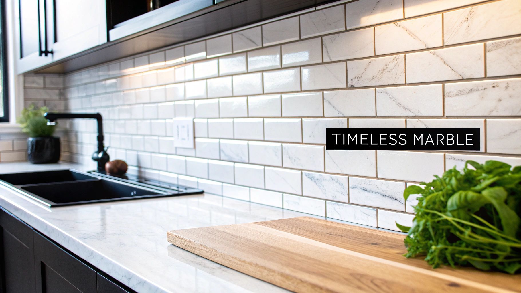1. Marble Subway Tile Backsplash