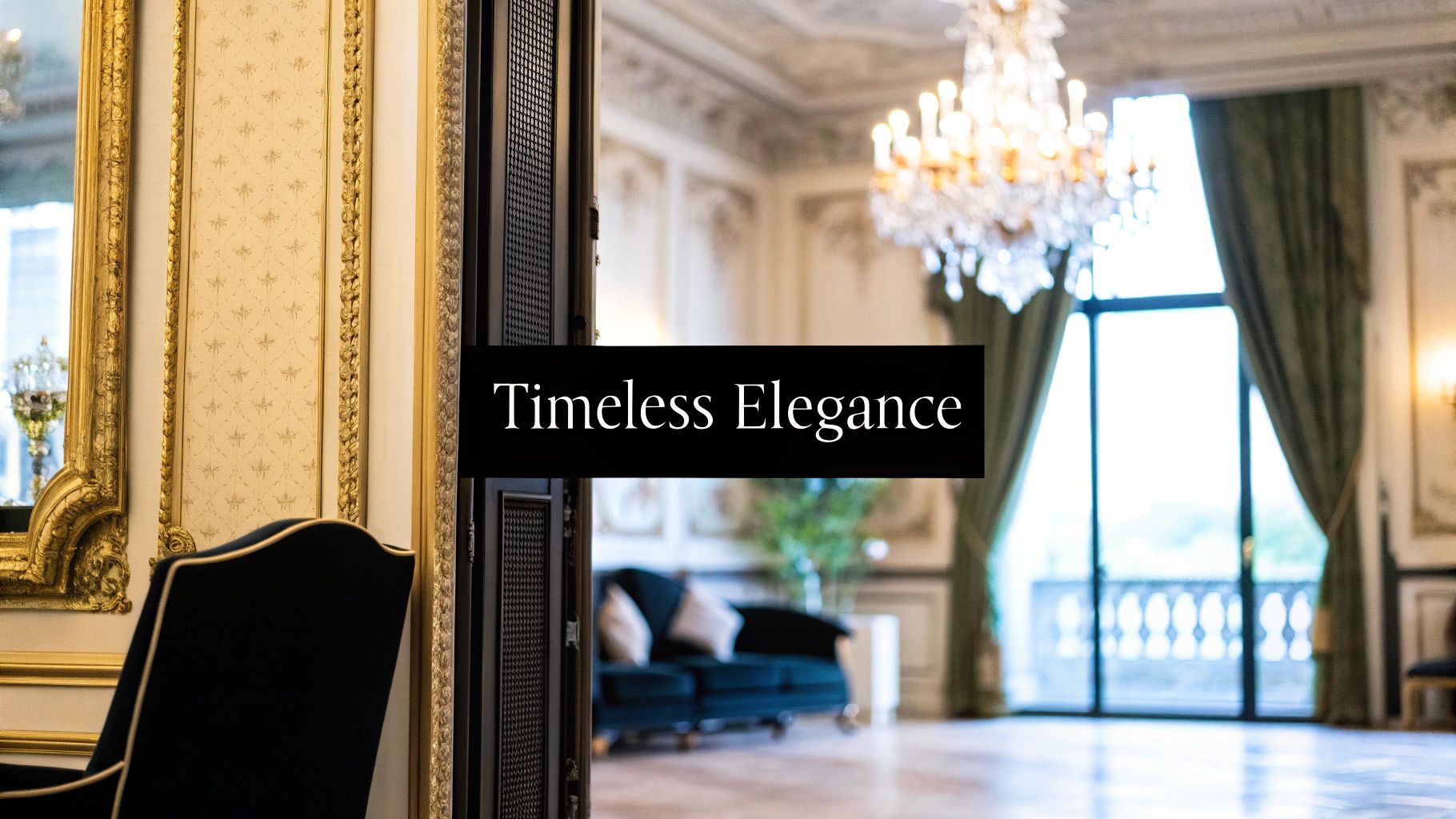 When you combine these details with strong architectural features, you create a layered and authentic interior. Even something like elaborate trim can elevate a space, and understanding a guide to crown molding design can help you integrate this classic detail flawlessly. By mastering these finishing touches, you achieve that signature effortless charm that defines timeless French style.