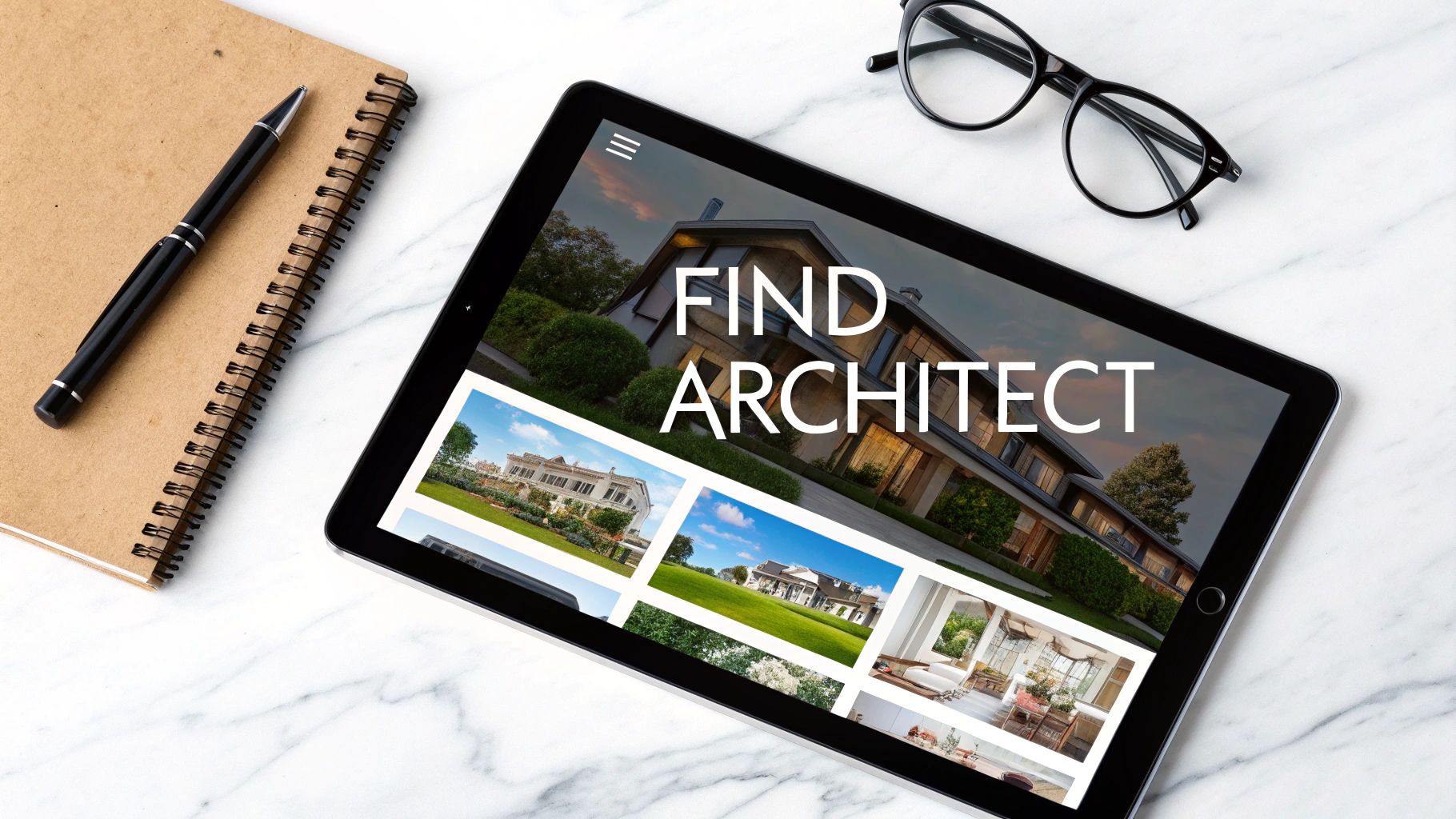 Now that you have a solid project brief, the real search begins. When you’re looking for an architect to design a luxury home, a simple Google search just won’t cut it. The aim isn’t just to find any architect; it’s to find a professional whose portfolio speaks to you and who has a proven history of managing projects with the same scope and complexity as yours. This calls for a much more focused strategy.