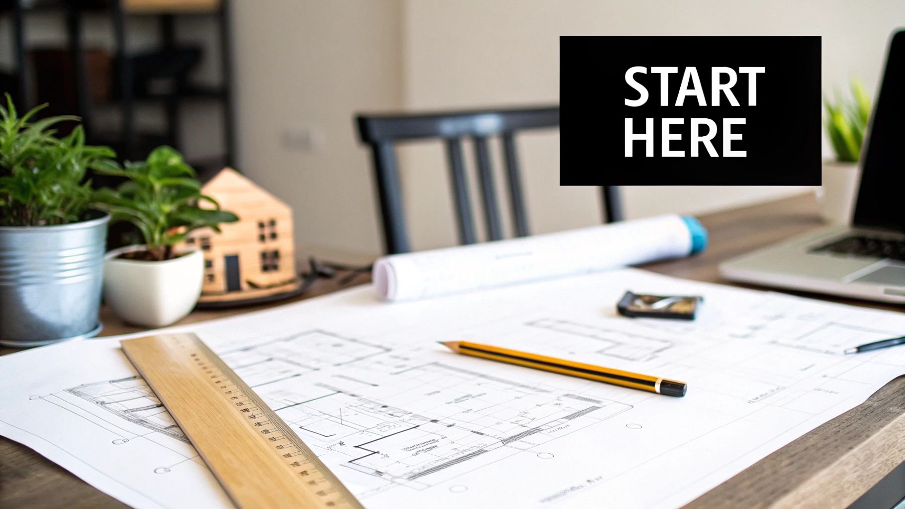 Getting familiar with this information first frames the entire project for you. You’ll know who designed it, what specific part of the building you’re examining, and whether the information is current. This initial orientation is a fundamental part of the overall architectural design process steps and sets you up to interpret the rest of the drawings with confidence.
