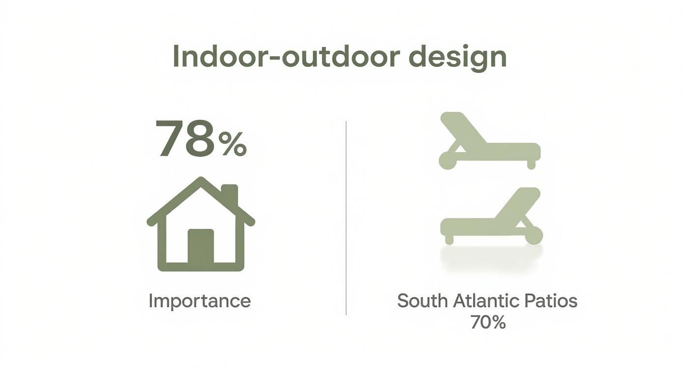 The numbers speak for themselves. With 78% of design experts prioritizing seamless transitions and regions like the South Atlantic seeing nearly 70% of new homes built with patios, this is no longer a niche luxury but a fundamental expectation.