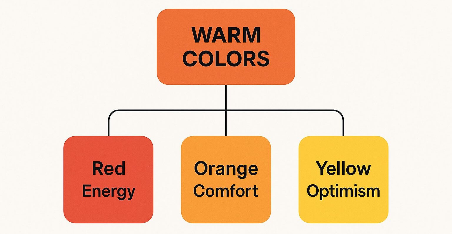 You can see how the general vibrancy of warm tones branches out into specific feelings, from the passionate power of red to the cheerful optimism of yellow.