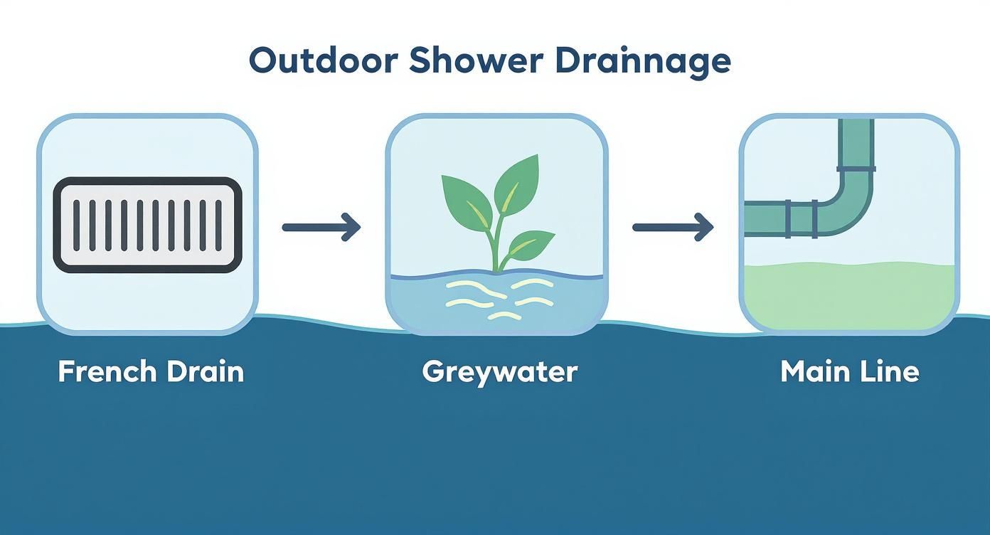 If you plan on using the shower daily with soaps and shampoos, things get more serious. Your local health codes will likely mandate a direct connection to your home’s main sewer or septic system. A great, eco-conscious option is a greywater system, which redirects the runoff to water your garden. Just remember, if you go this route, you have to commit to using biodegradable, plant-safe soaps to keep your landscape healthy.