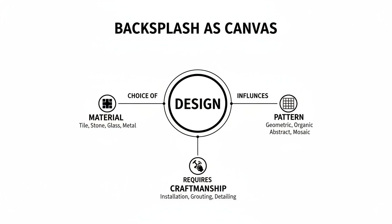 The diagram below illustrates how material, pattern, and craftsmanship are the foundational pillars of any exceptional backsplash design.