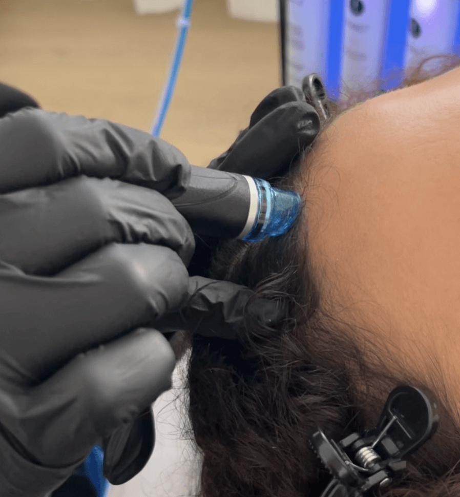 For the best outcome, a series of three monthly sessions is recommended. This consistent protocol helps optimize scalp health, strengthen hair follicles, and encourage ongoing growth. When combined with the at-home spray, patients receive a well-rounded treatment plan that supports both immediate and long-term results.