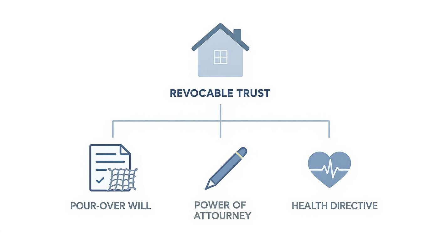 While the Revocable Trust is the centerpiece, you can see how critical supporting documents like a Pour-Over Will and Powers of Attorney are to creating a truly protective structure.