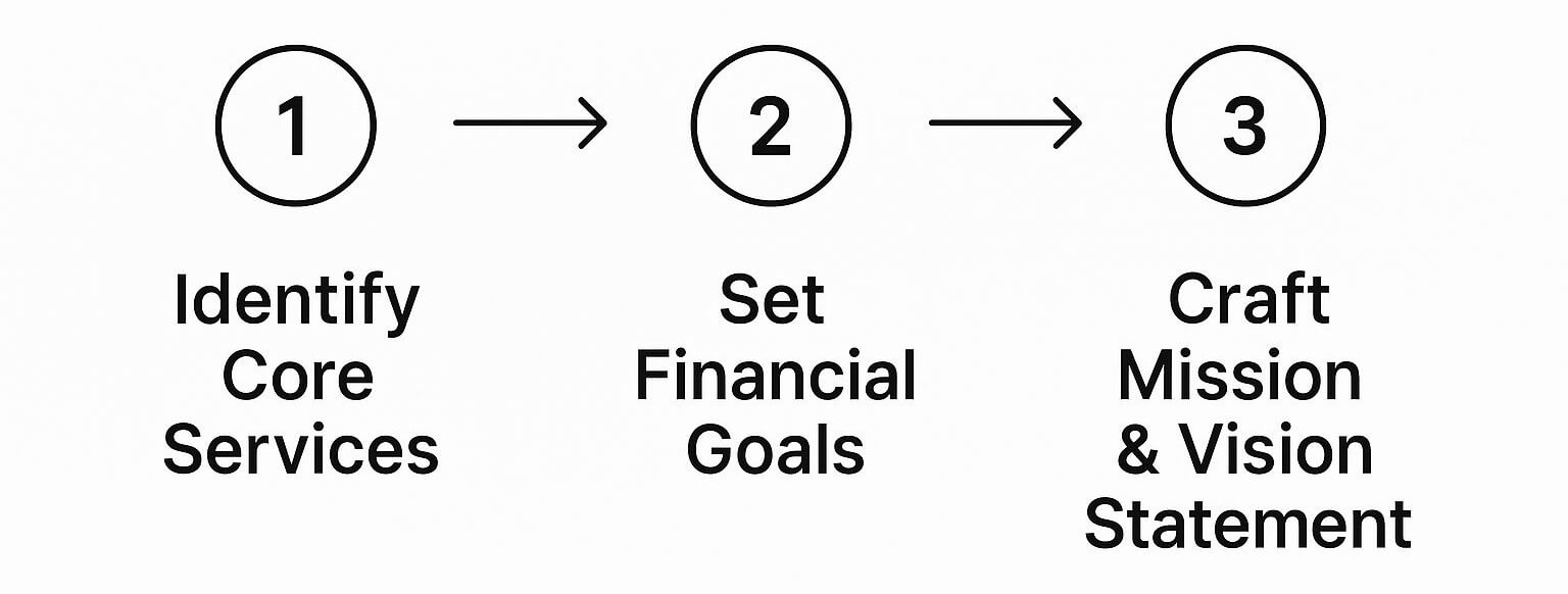 Before you can write an inspiring mission statement, you have to get brutally honest about the fundamentals. This means clearly identifying your core services, setting tangible financial goals, and then weaving those practical elements into a unified, powerful statement.