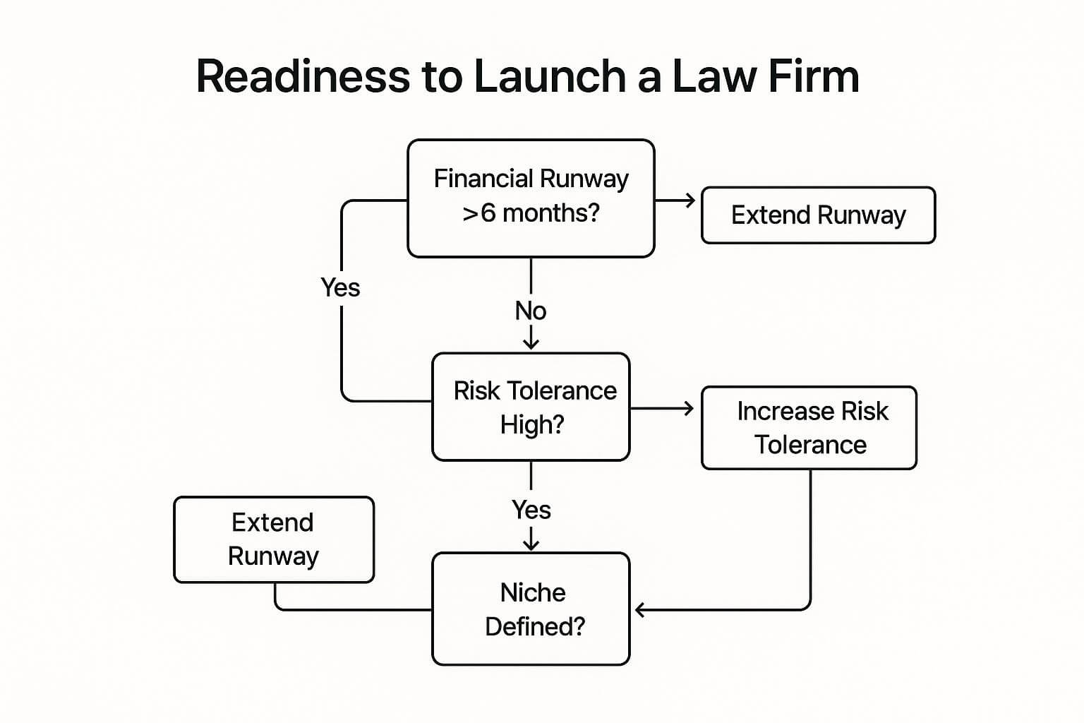 As the decision tree shows, financial stability and a clearly defined market are non-negotiable. Without them, even the best legal mind will struggle to build a viable practice.