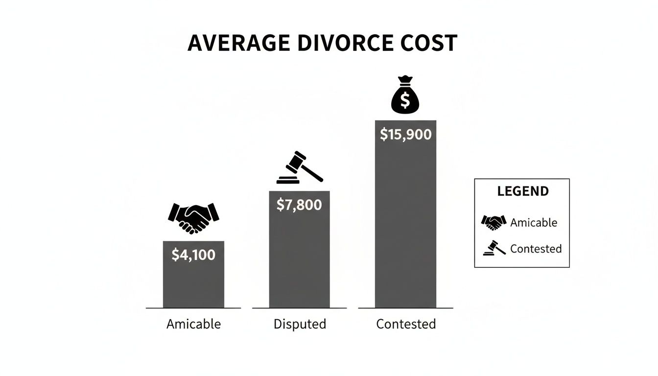 When people ask how much a divorce costs, they’re looking for a number. The reality is, there isn’t just one. The national average divorce cost sits somewhere between $11,300 to $20,000, but that’s just a starting point. An amicable, straightforward split might wrap up for a few thousand dollars. A high-conflict, contested battle, however, can easily skyrocket past $50,000.