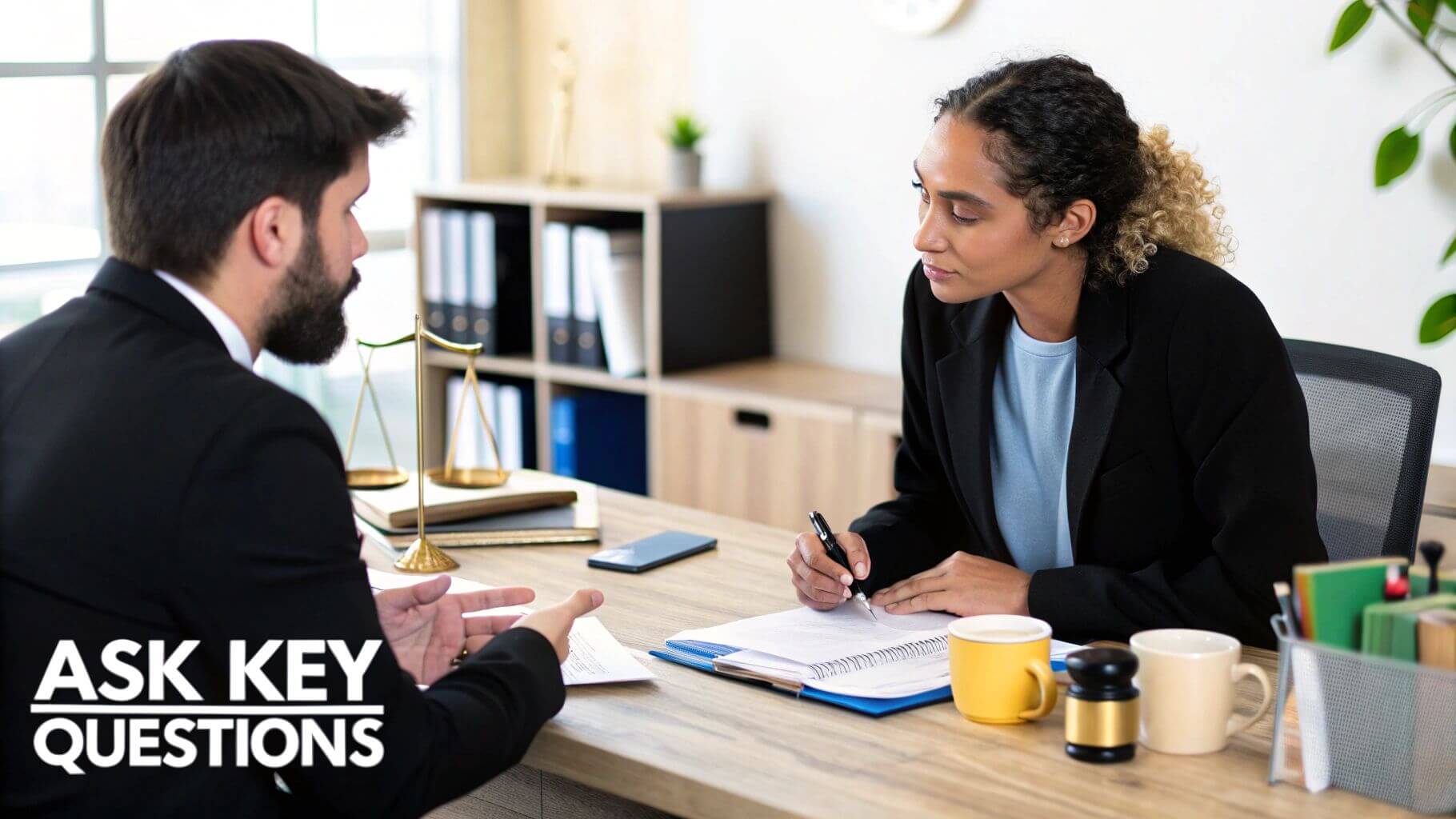 The table below outlines the essential questions you should be asking every single lawyer you meet with. This framework will help you organize your thoughts and directly compare your options.