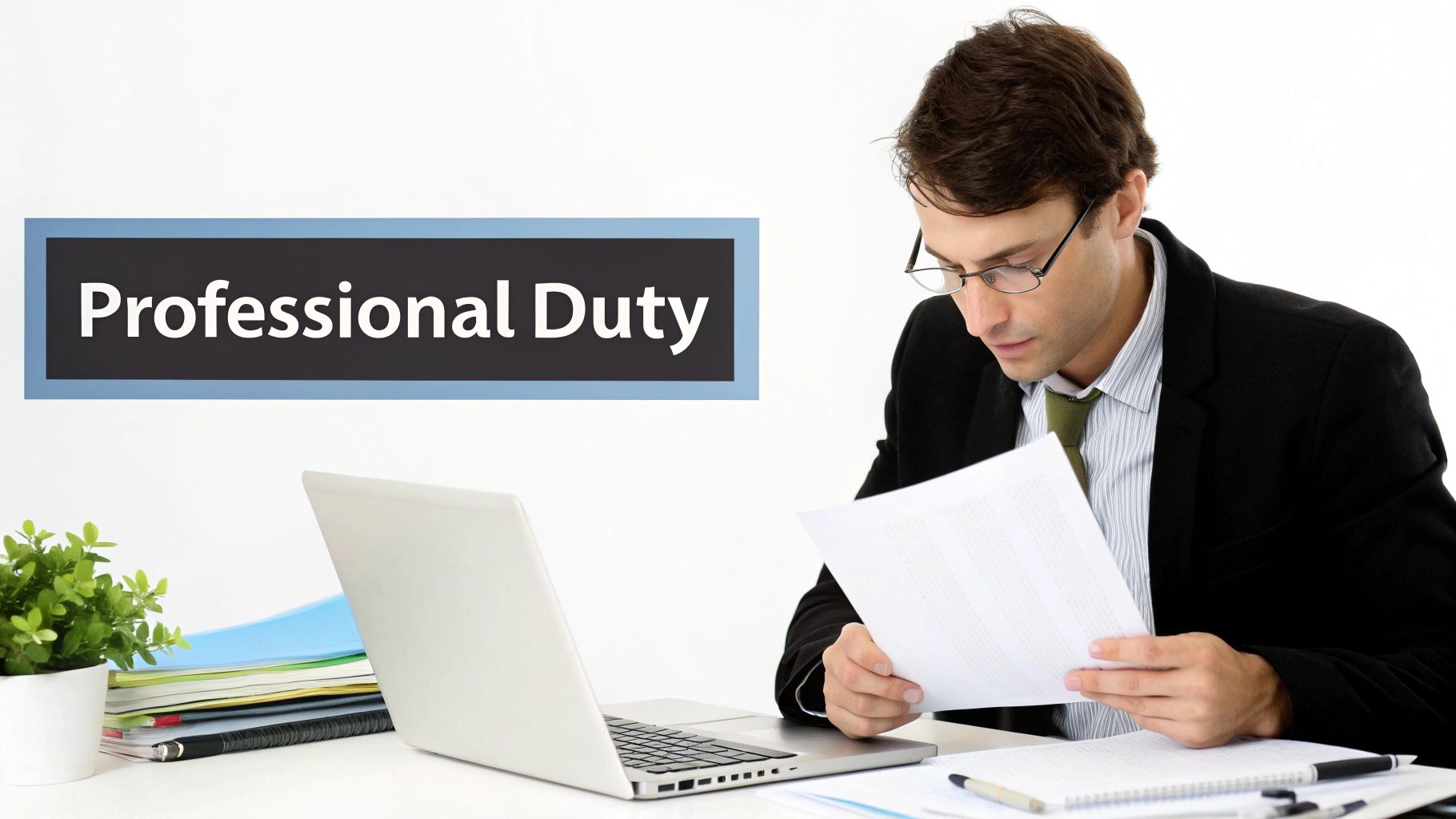 The duty of care is the absolute baseline. It simply means you must act with reasonable skill and diligence, bringing the right level of competence to a client’s case and applying it consistently. Imagine hiring a surgeon who isn’t up-to-date on modern surgical techniques—their failure to apply the standard of care in their field would be a clear breach.