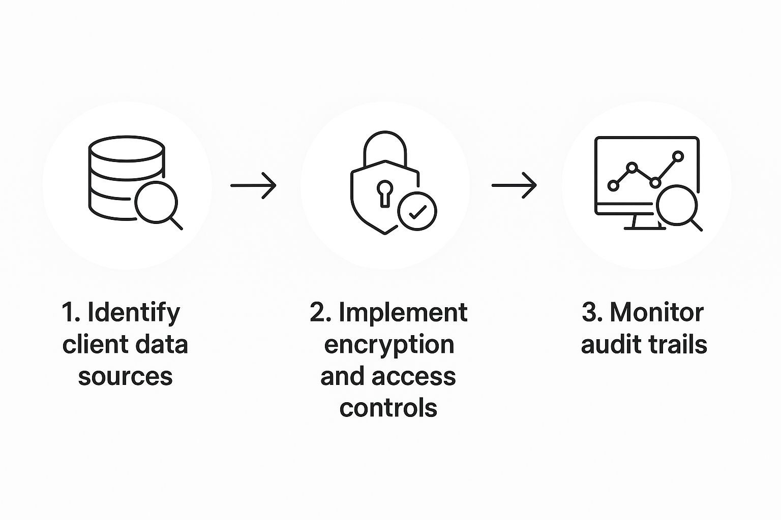 This constant threat demands a proactive, not reactive, approach to data security. A truly comprehensive data protection strategy involves several critical steps, from mapping out where all your data lives to implementing robust, multi-layered controls. The process below lays out a foundational framework for safeguarding client information in the real world.