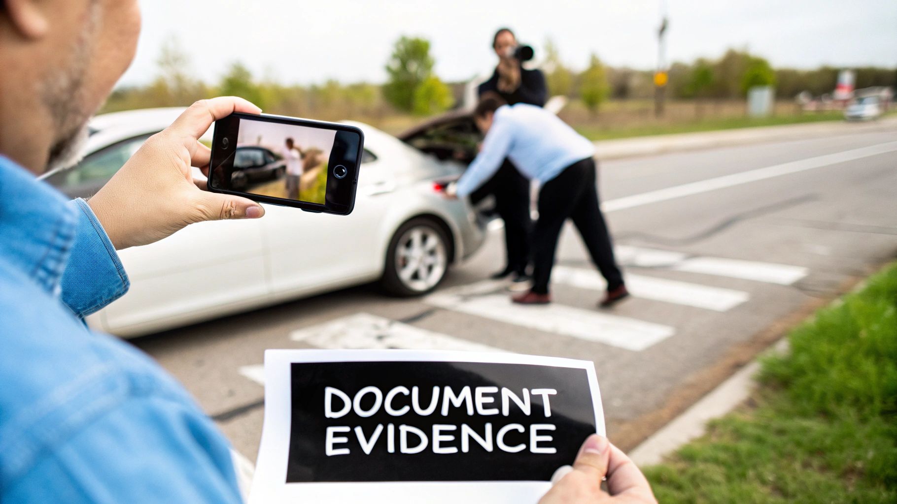 Once everyone is safe and the necessary calls have been made, your focus must pivot from immediate crisis management to evidence preservation. What you collect in the first few minutes after a crash can become the entire foundation of your claim. Your smartphone is no longer just a phone; it’s a powerful tool for creating an undeniable record of what happened. This is precisely what separates a clean, straightforward claim from a drawn-out, painful dispute.