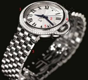 - Bezel and crown guard set with 151 diamonds