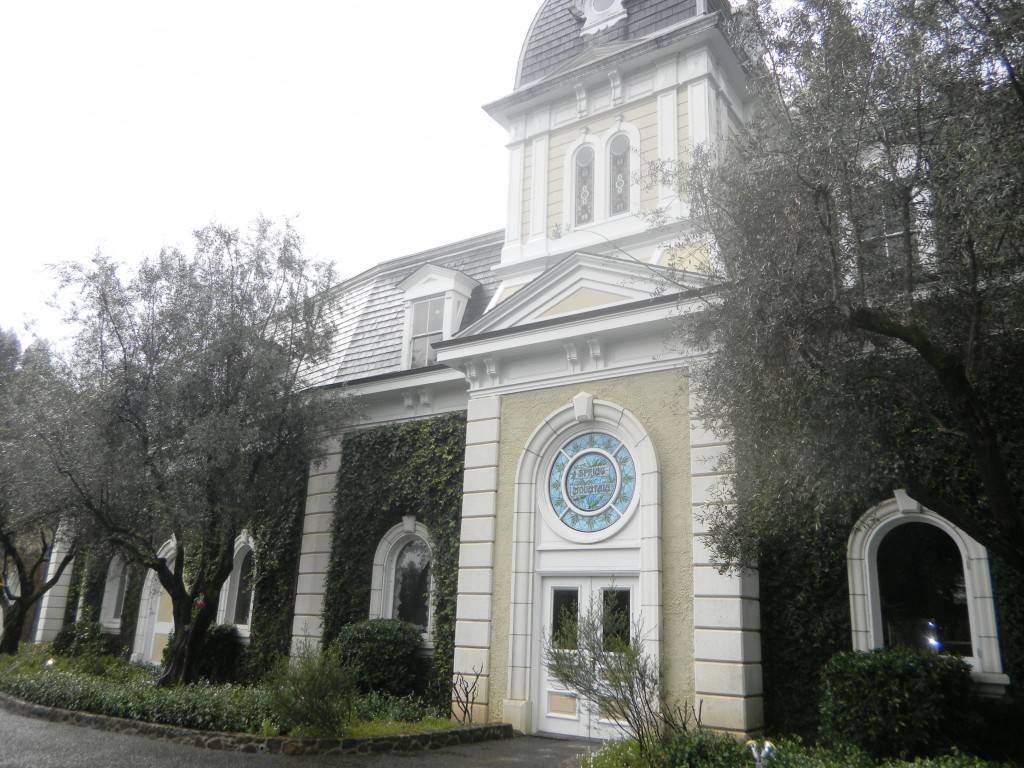 Our last tasting stop was Rubicon Estate Winery in Rutherford. Formerly Inglenook and Neibaum-Coppola Estate Winery, legendary movie director and wine maker Francis Ford Coppola has been making wines at this estate for 29 years before he purchased the original Inglenook Chateau in 1995 and united this historic Napa Valley estate established in 1879. The name was changed to Rubicon to celebrate the restoration of the organically certified vineyards, completion of the extensive wine caves and the return of wine making to the Chateau for the first time since 1966. The ivy-covered stone chateau building features distinctively appointed tasting rooms, vaulted stone cellars and a hand-carved staircase with an exquisite stained glass window bearing the winery’s logo leading to museum of documents, artifacts from Inglenook’s early beginning and the story of the Coppola family restoration of the Estate. A tasting of five wines in the impressive cavernous gift shop offers cabernet blanc, merlot, and zinfandel made from organically grown grapes. Bottles range from around $20 to more than $100. We were told the Coppola film memorabilia museum is no longer at this winery.