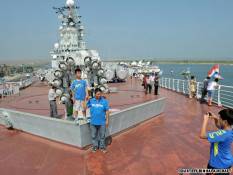 According to reports, the ship used to be part of the Binhai Aircraft Park project and was primarily used to display modern military equipment. Now, there are 148 high-end rooms including 2 presidential suits, 3 VIP guest rooms and 137 standard rooms. The ship also features dining and common areas decked out in traditional oriental color and pattern schemes.