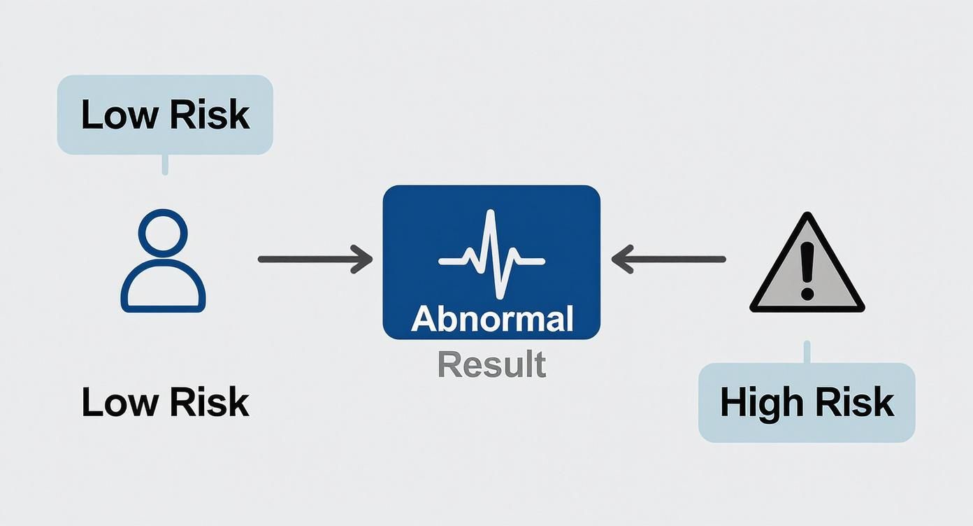 As the graphic shows, the very same abnormal result means something different for a patient with a low pre-existing risk versus someone with a high risk. This context is what guides the entire diagnostic journey.