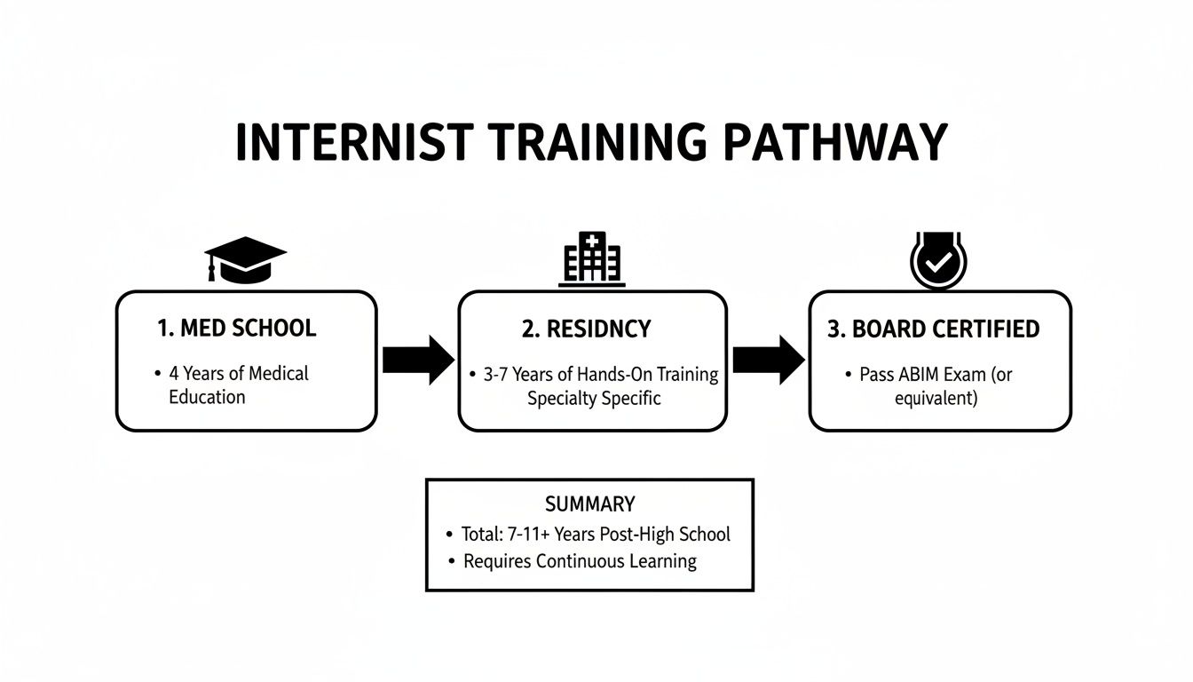 Becoming an internal medicine physician is a marathon, not a sprint. It’s a decade-long commitment defined by intense education and hands-on training, all designed to forge the deep diagnostic expertise needed to manage the complexities of adult health.