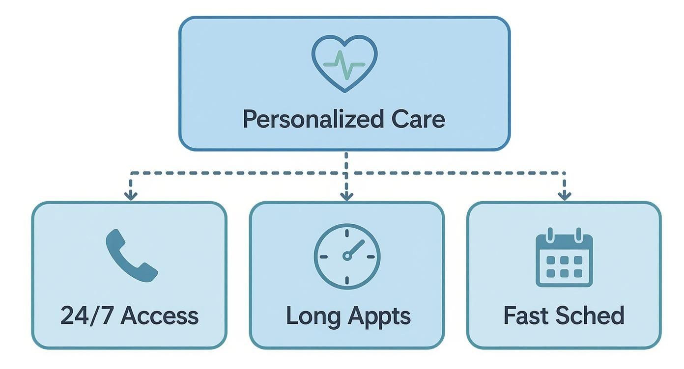 As you can see, personalized care isn’t just a single feature. It’s the powerful outcome you get when 24/7 access, longer appointments, and faster scheduling all work together.