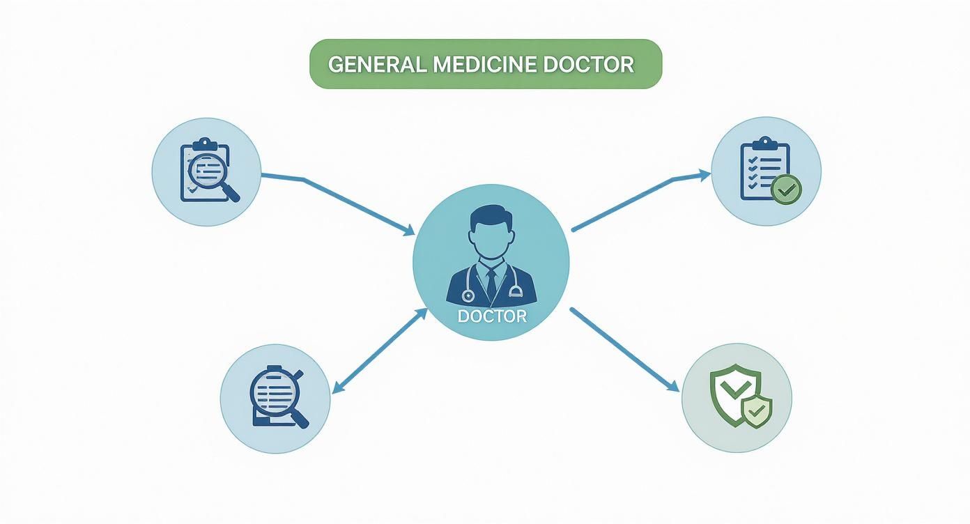 This table illustrates that a general medicine doctor does far more than just treat the common cold; they are the strategic managers of your lifelong health.