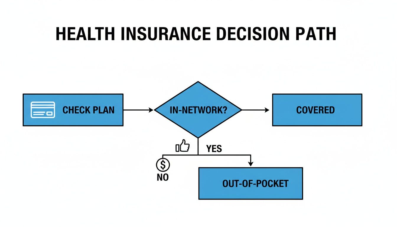 As this decision tree shows, verifying your insurance plan is a critical first move. It dictates whether your care will be covered at a lower cost or if you’ll be facing significant out-of-pocket expenses.