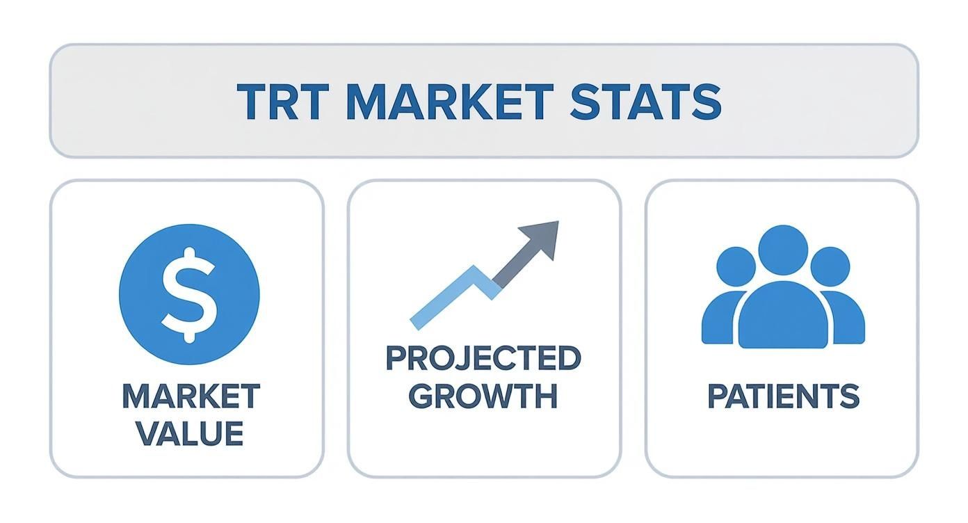 The infographic below gives you a sense of the scale of TRT, highlighting just how many men are seeking treatment and how the field is growing.