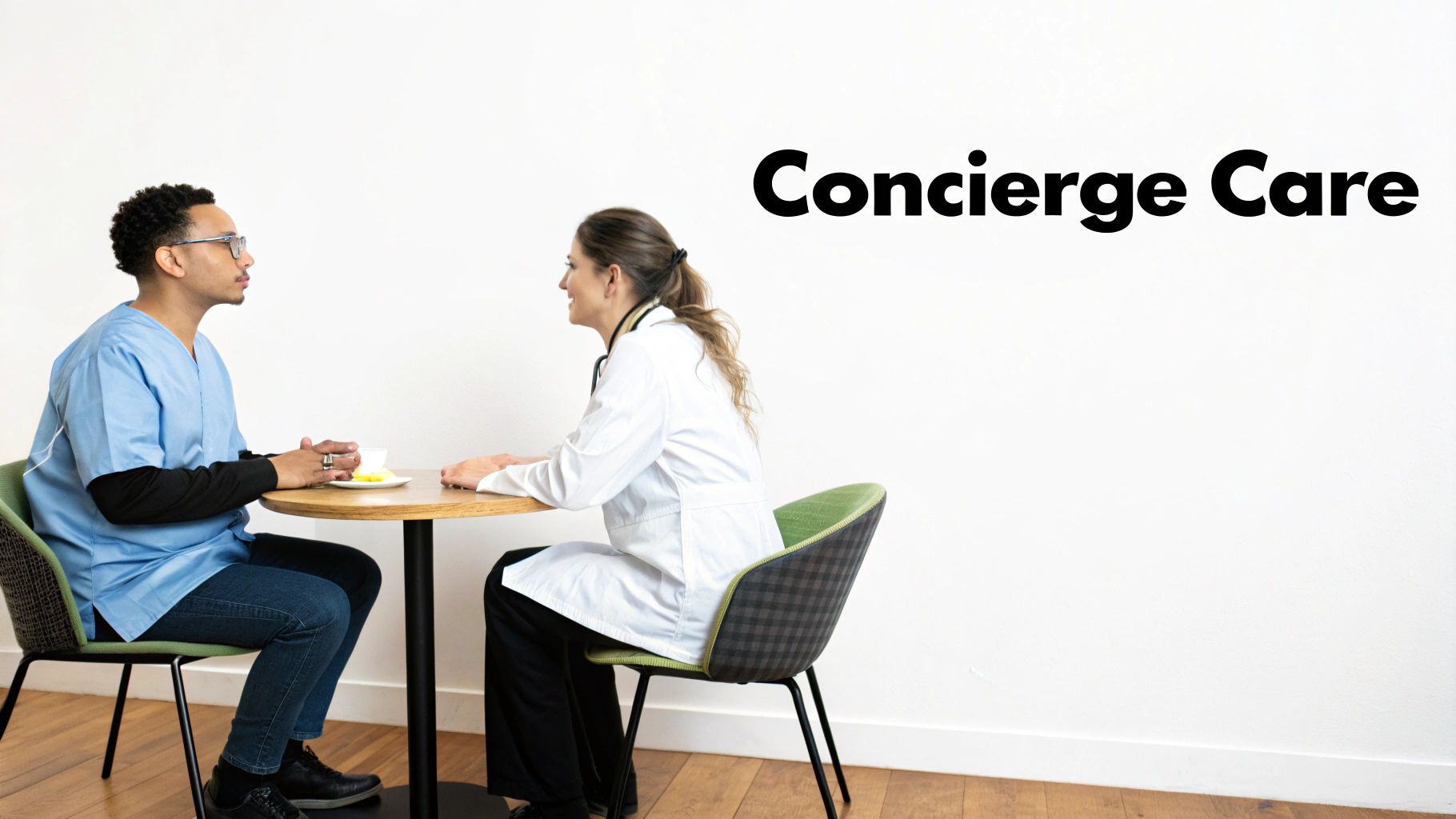 Concierge care blends an annual retainer with your existing insurance for things like labs, imaging, and specialist referrals. You get premium access without giving up your traditional coverage.