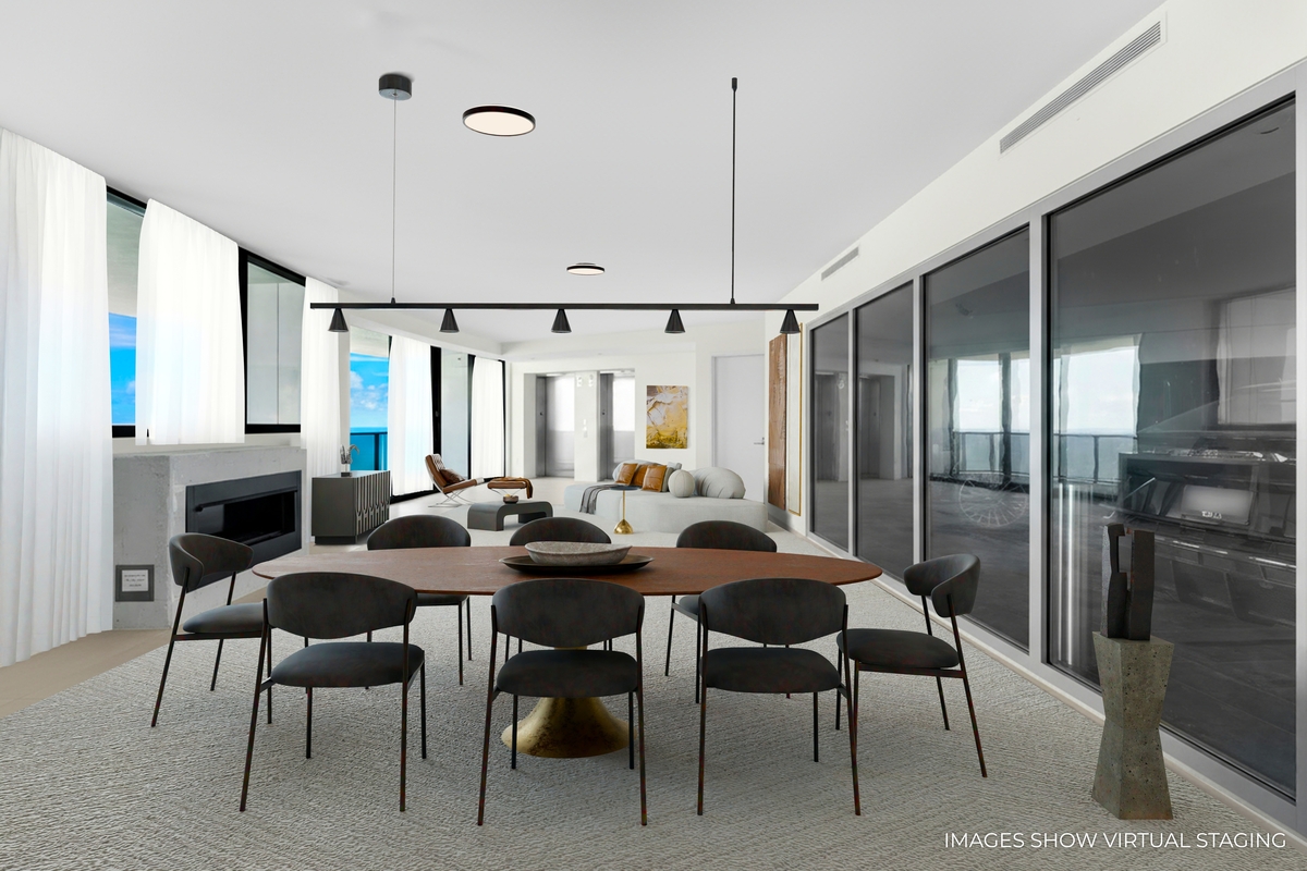 Sleek carbon fiber kitchen boasts a large eat-in island & top-tier Miele appliances, including a built-in coffee/espresso machine. The sumptuous primary suite offers endless ocean views, direct terrace access, spacious walk-in closet & spa-like bathroom w/ oversized double rain shower & separate soaking tub. Features 3 guest bedrooms & laundry room w/ full bath. Enjoy world-class Porsche Tower amenities!