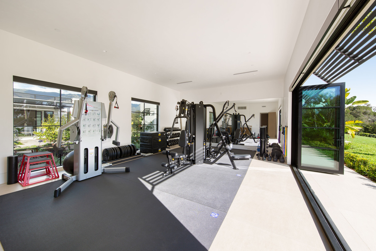 An open floor plan, first-floor primary suite, cathedral ceilings, covered outdoor room, pool/spa, gym, and 2 garages offer endless creature comforts. Thoughtful details, refined finishes, and quality craftsmanship elevate every space. Perfectly positioned to embrace the Montecito lifestyle, the location offers easy access by foot or bike to the beach, Rosewood Miramar, Coast Village Road, and top schools.